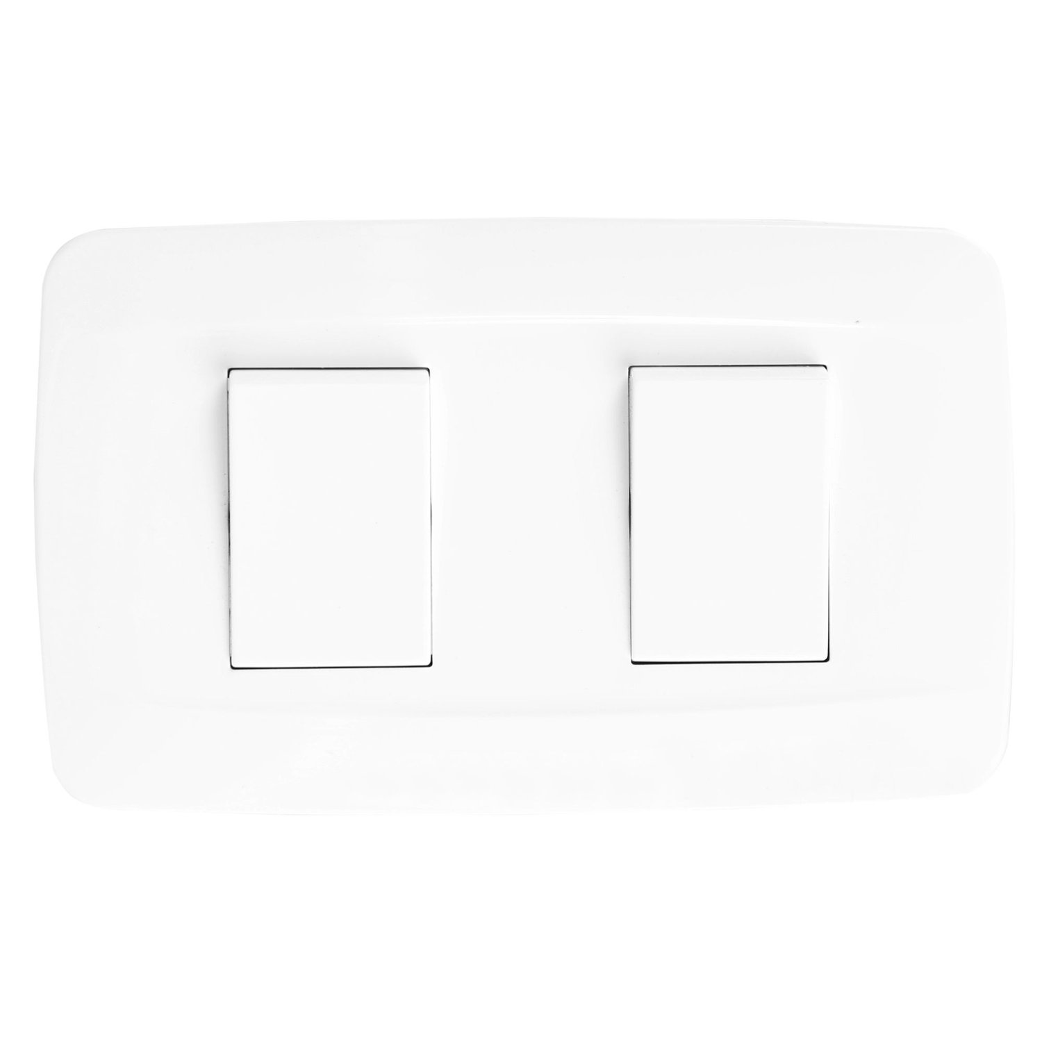 El Interruptor Doble Primmus Blanco cuenta con dos agujeros para la instalación de dos interruptores. Su tipo de divisor es un interruptor doble, y su tipo de placas/cajas es una placa embutida. El interruptor tiene una capacidad de 2 interruptores, con un voltaje de 250 V y un amperaje de 10 A. Su uso principal es para encender y apagar la luz, brindando un control independiente de dos puntos de luz.