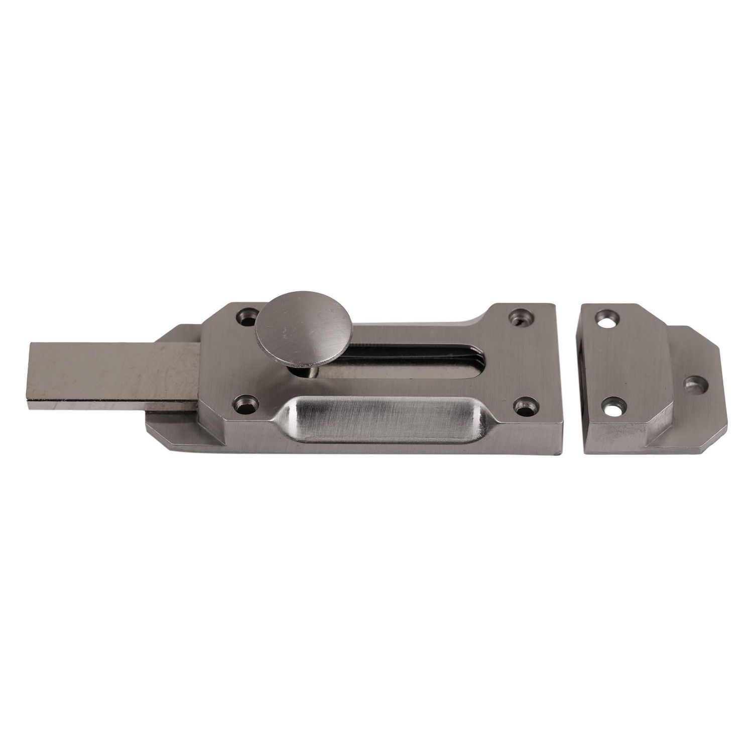 Este pestillo tiene un largo de 11 cm y un ancho de 7.5 cm. Su color acero le da un aspecto elegante y moderno. Está hecho de acero, lo que garantiza su durabilidad y resistencia. El pestillo no es reversible, por lo que solo se puede instalar en una dirección. Además, incluye tornillos para su instalación, lo que facilita su colocación.