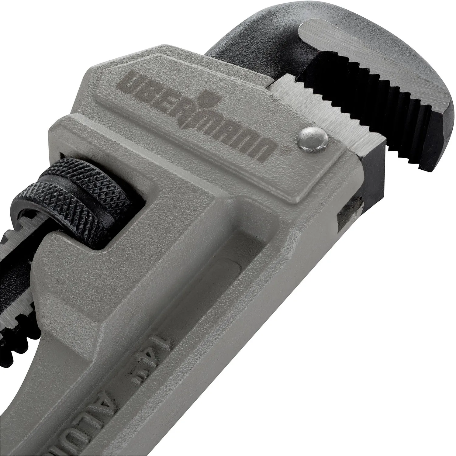 Esta llave para tubo Ubermann, de tipo Stilson, está fabricada en acero inoxidable, lo que asegura su durabilidad. Con un largo de 33.6 cm, es ideal para trabajos de tipo amateur. Su diseño permite un agarre y apriete preciso, facilitando tus tareas.