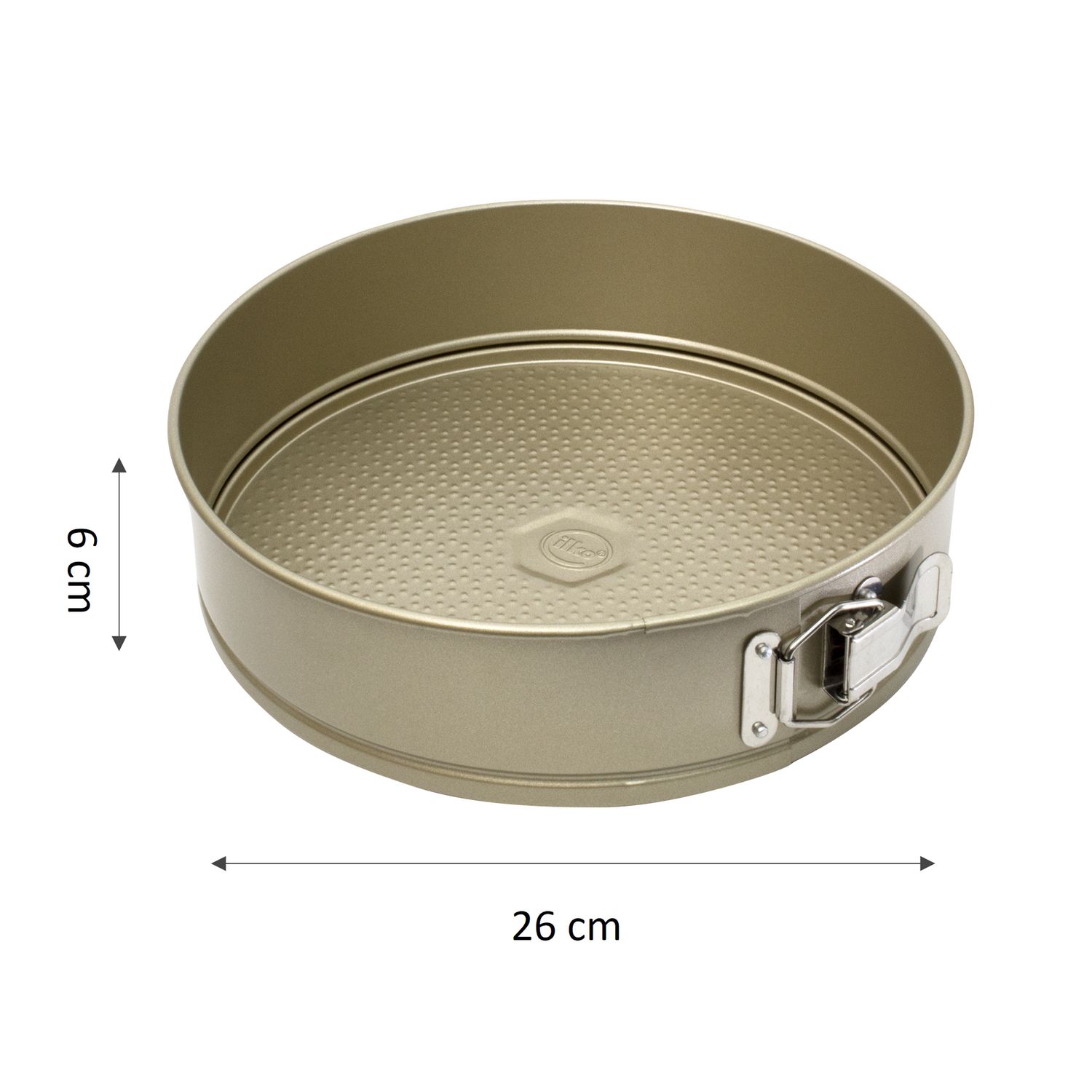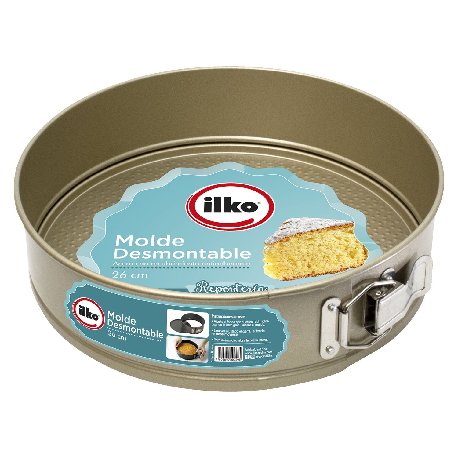 Prepara deliciosos postres con el Molde Redondo Antiadherente 26 cm Gold de Ilko. Su diseño desmontable te permite sacar tus preparaciones sin esfuerzo, mientras que su revestimiento antiadherente asegura que nada se pegue. ¡Disfruta de la facilidad de uso y la calidad de este molde para hornear tus recetas favoritas!