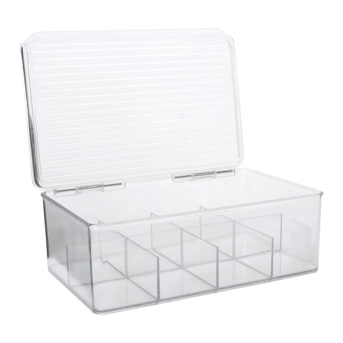 | Características | Este contenedor apilable está hecho de plástico transparente duradero. Se divide en 8 partes para organizar suministros médicos, bolsitas de té, suministros para el cabello y mucho más. |
