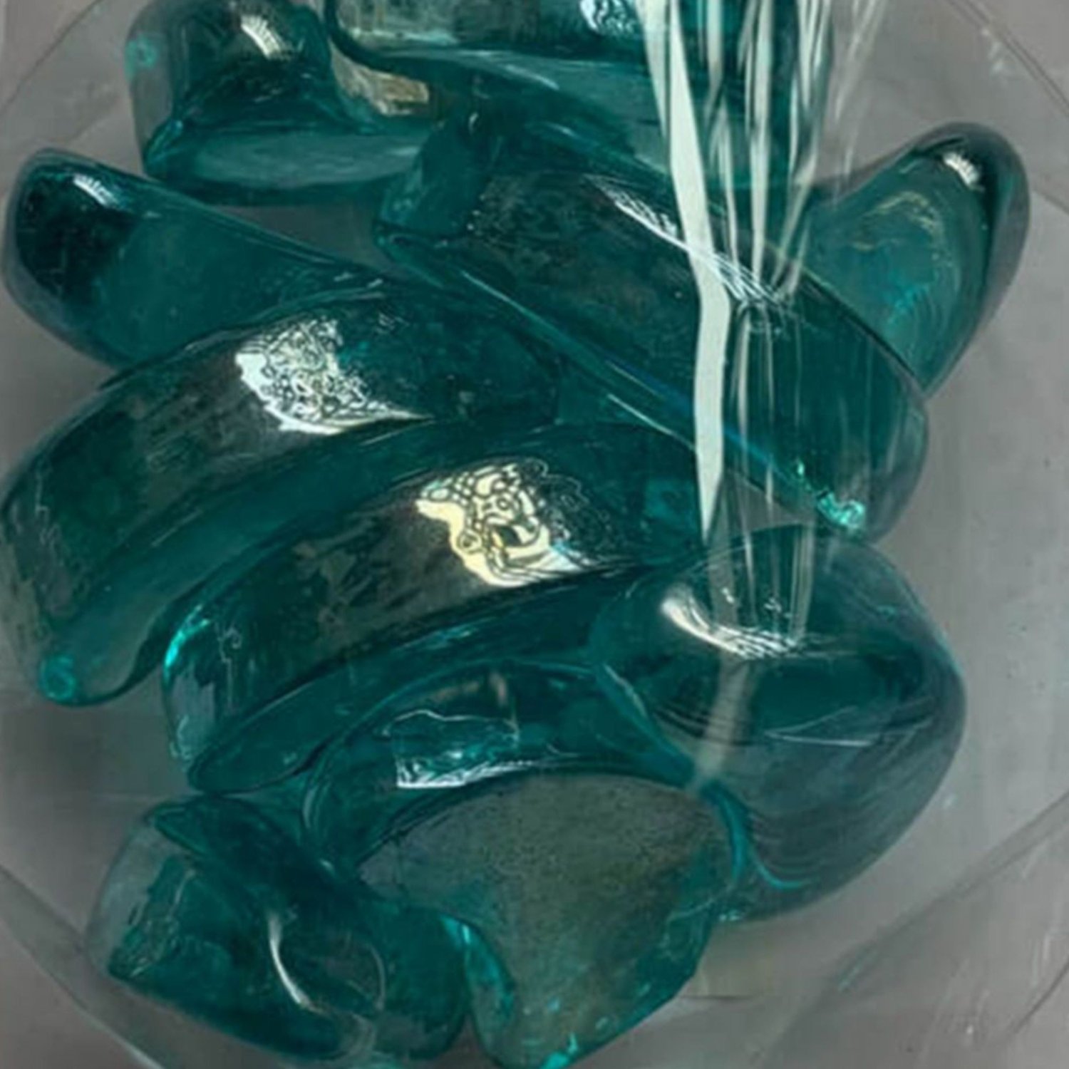 Las Gemas Grandes Luna son translucidas y de color celeste, lo que les da un aspecto delicado y refrescante. Están hechas de vidrio, lo que las hace resistentes y duraderas. Cada gema tiene un largo de 12.5 cm y un ancho de 8 cm, lo que las hace ideales para decorar espacios de diferentes tamaños.