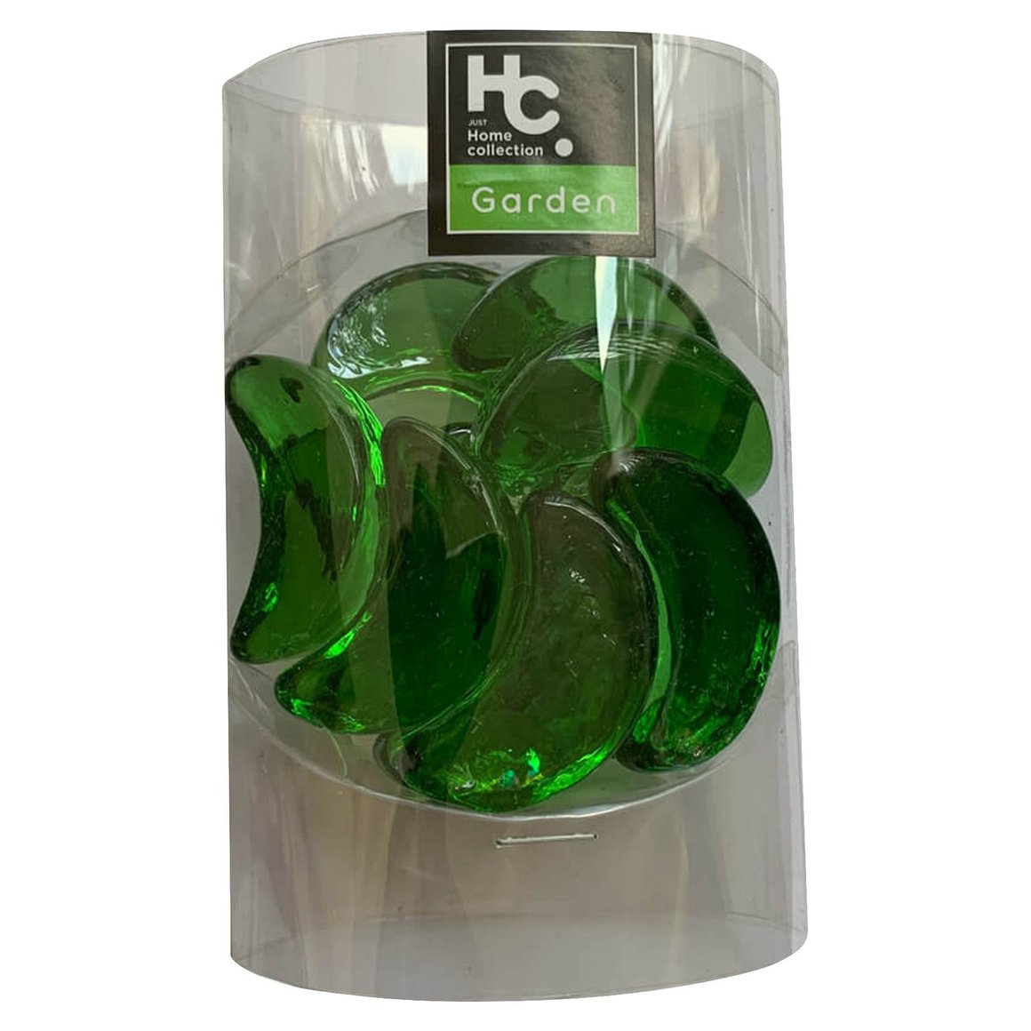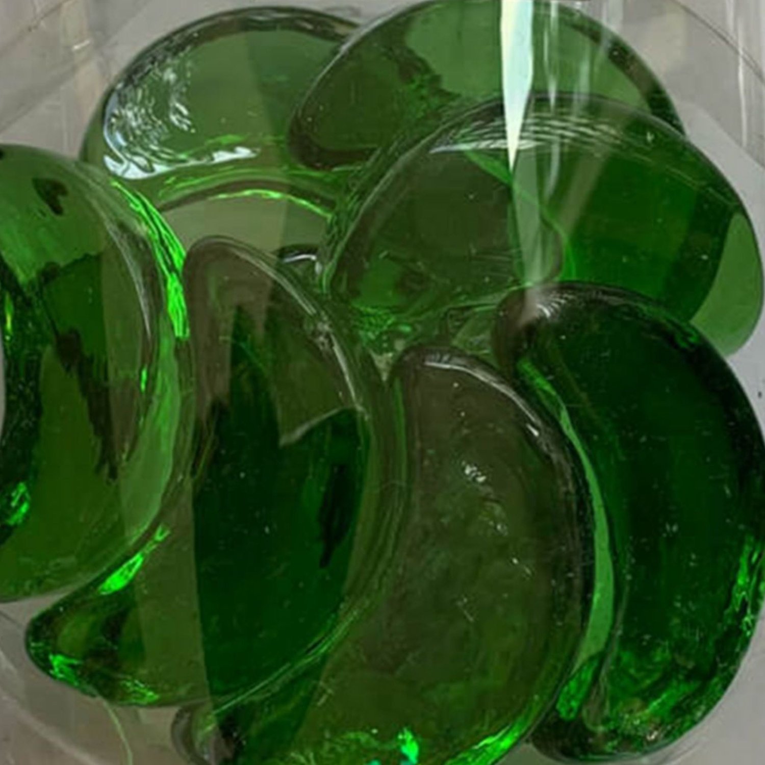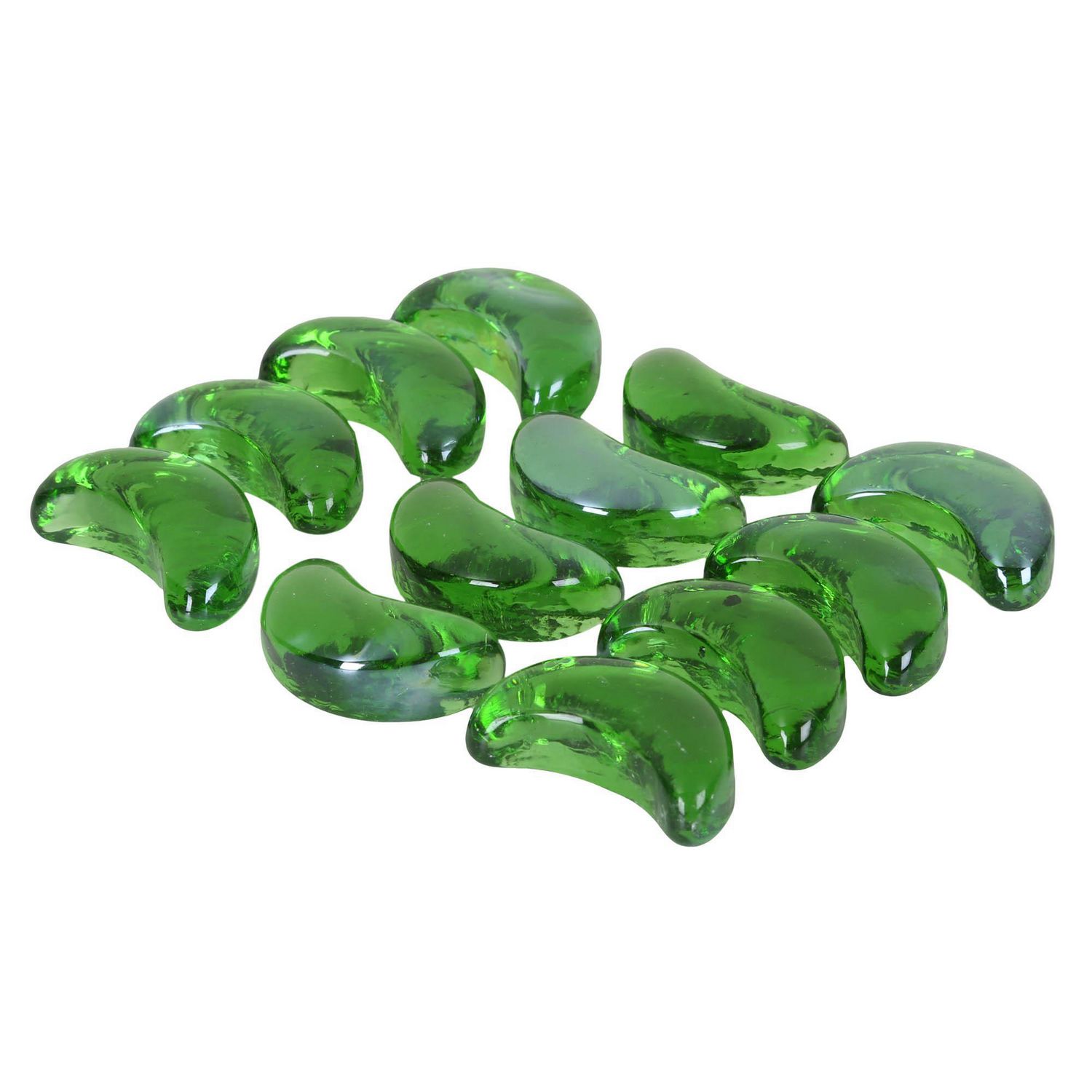 Las Gemas Grandes Luna son de vidrio verde, con un largo de 12.5 cm y un ancho de 8 cm. Vienen en un paquete de 12 unidades, lo que te permite crear un diseño único y original en tu hogar. El material de vidrio le da un toque elegante y natural a cualquier espacio.