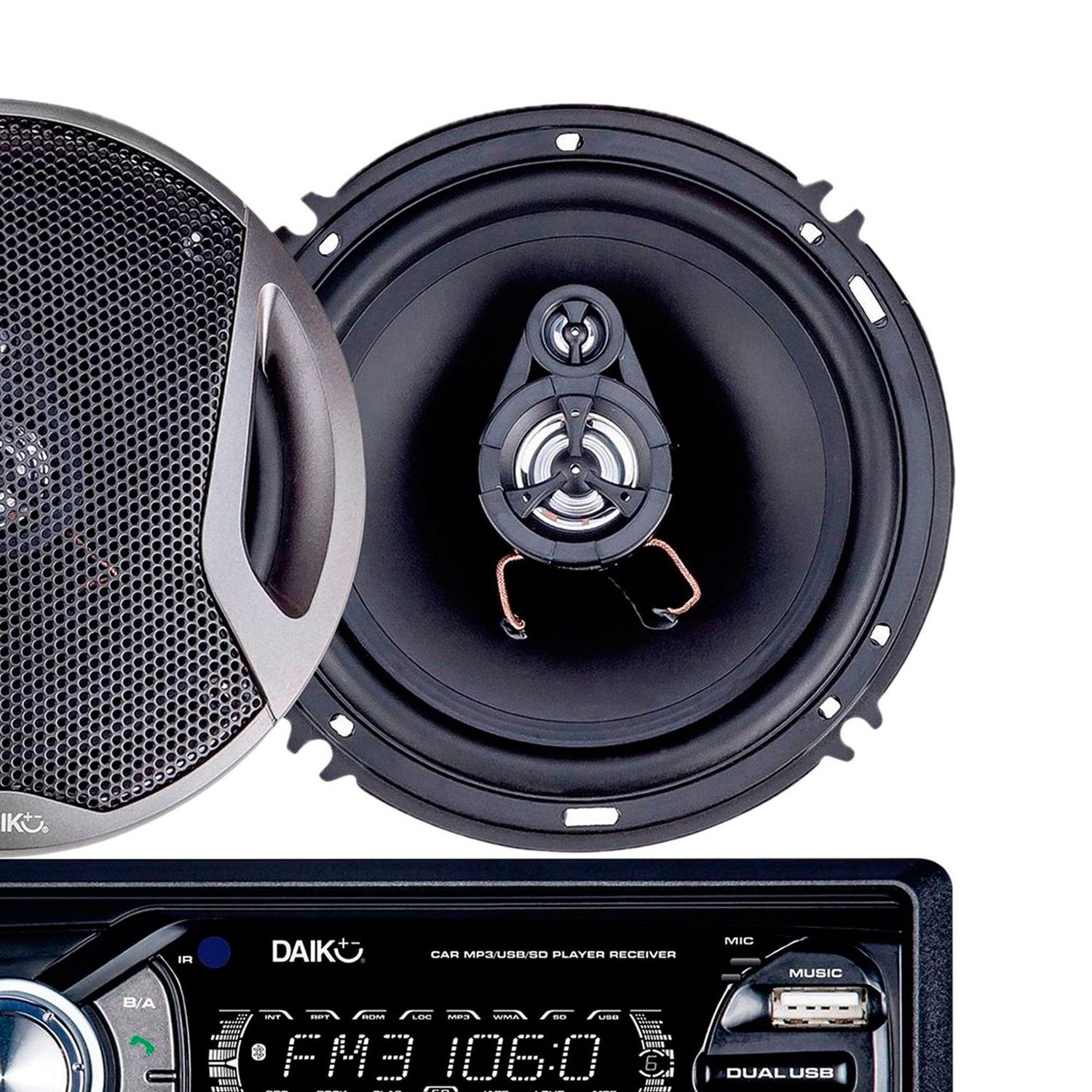 | Contenido | 2 parlantes, 1 autoradio y 1 control remoto. |
