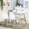El juego de comedor Soar tiene una mesa de vidrio transparente de 80x120x76 cm, con un acabado brillante. Su estructura es de acero, y las patas son de madera. Las cuatro sillas incluidas tienen una estructura de madera, tapiz de polipropileno de color blanco y soportan hasta 100 kg. El juego requiere armado, con una dificultad media. Es un modelo de estilo vintage moderno, ideal para complementar la decoración de tu sala.