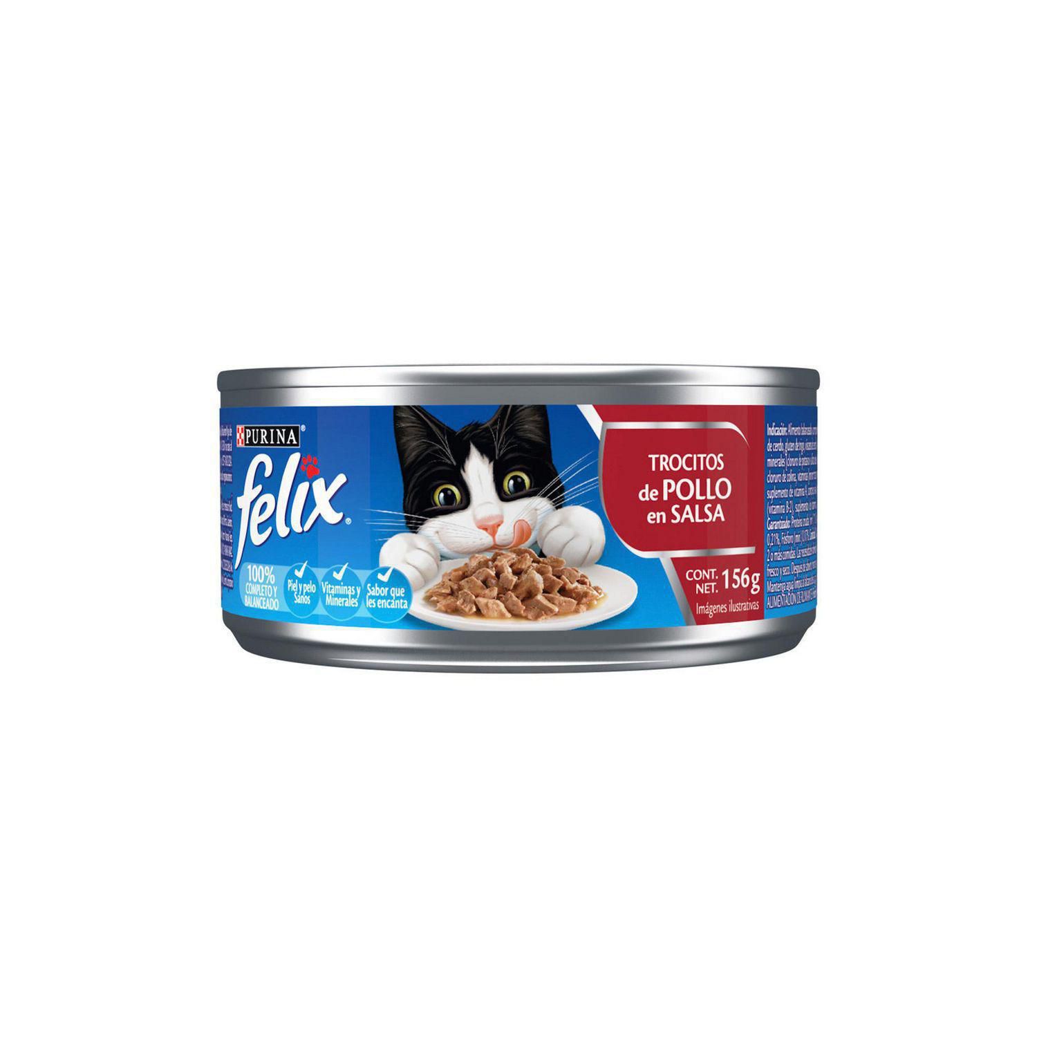 Características Alimento húmedo Premium para tu gato. PURINA FELIX Adulto trocitos de pollo en salsa es un alimento completo y balanceado, que cuenta con una proteínas de alta calidad. Su sabor irresistible combina la textura, el olor y la apariencia, para que tu engreído lo disfrute y saboree al máximo.