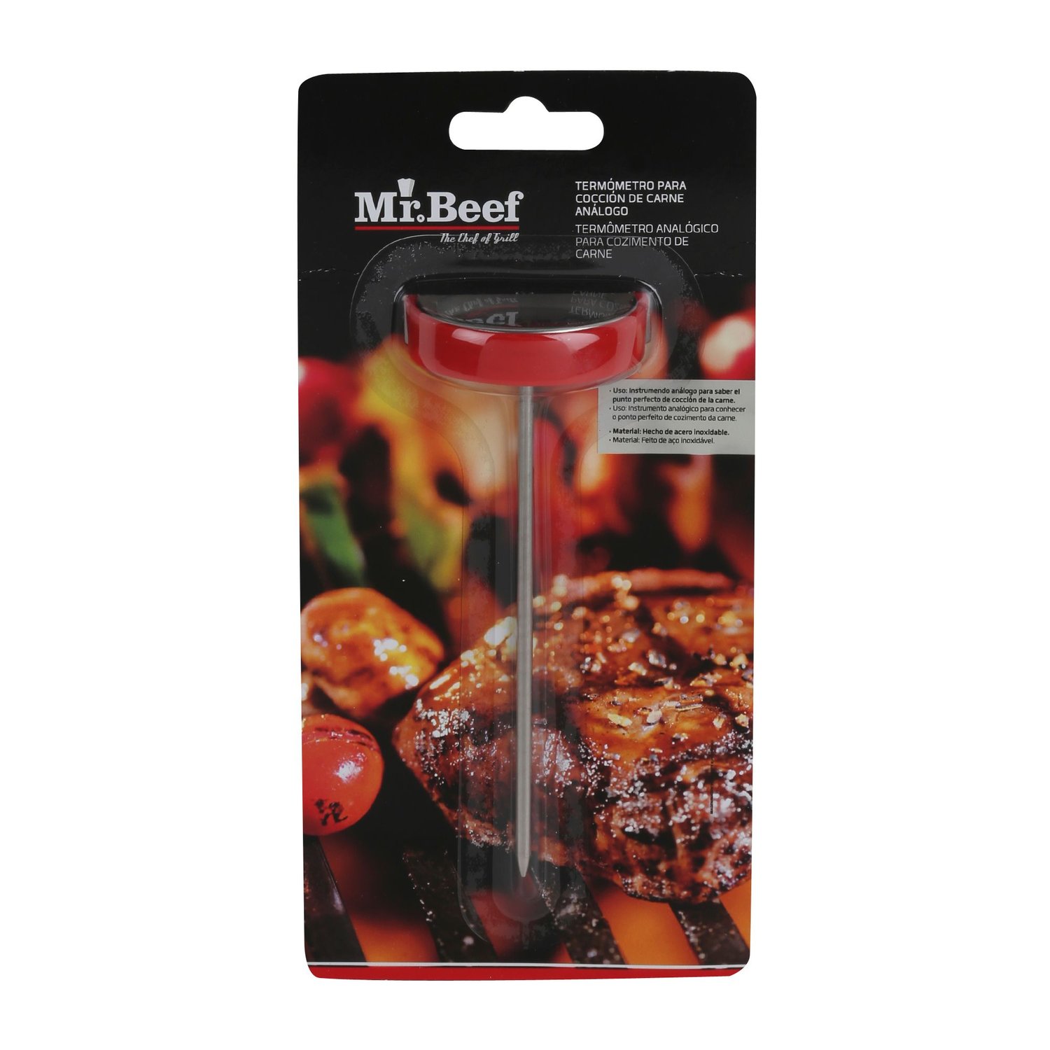¡Prepara tus asados como un verdadero experto con el Termómetro para Carnes! Con este práctico accesorio de Mr. Beef, podrás medir la temperatura interna de tus cortes de carne y asegurarte de que queden en el punto perfecto. Su diseño elegante y cómodo lo hace ideal para tus reuniones con amigos y familiares. ¡No esperes más para disfrutar de carnes jugosas y deliciosas!