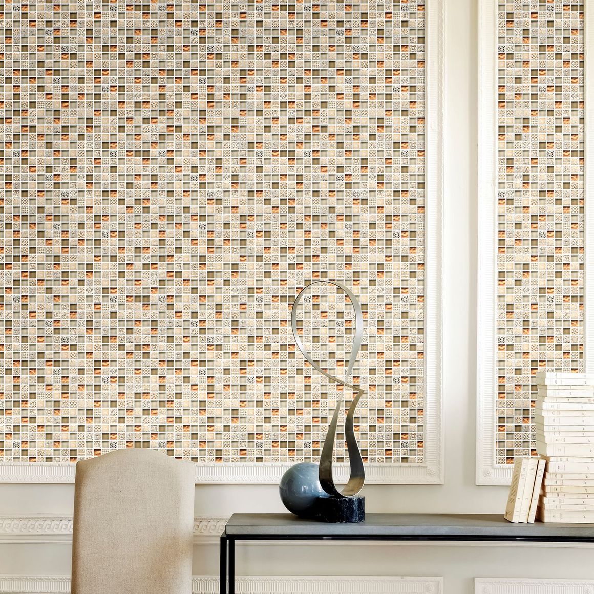 Si buscas darle un toque único a tus espacios, la Malla Mix de Piedra y Vidrio Dorado es la opción ideal. Esta malla combina la elegancia de la piedra y el brillo del vidrio en tonos cálidos y neutros, creando un efecto tridimensional que transformará tus muros interiores y exteriores. Su diseño Boho Chic te permitirá crear ambientes con mucha personalidad.