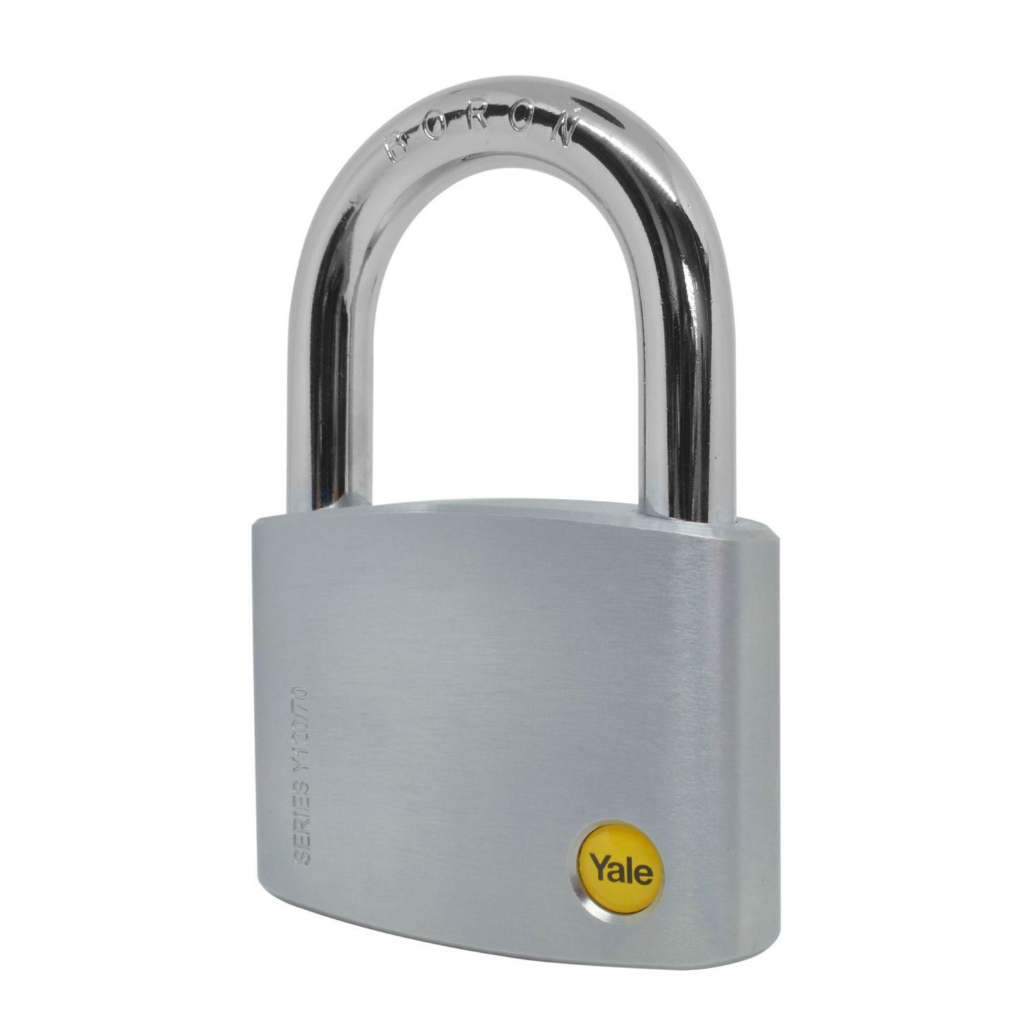Este candado cuenta con un diseño robusto y duradero, ideal para proteger tus objetos valiosos. Su cuerpo de acero y latón le proporciona resistencia y seguridad, mientras que su acabado cromado le da un toque elegante y moderno. El candado Yale es la mejor opción para proteger tus pertenencias con estilo.
