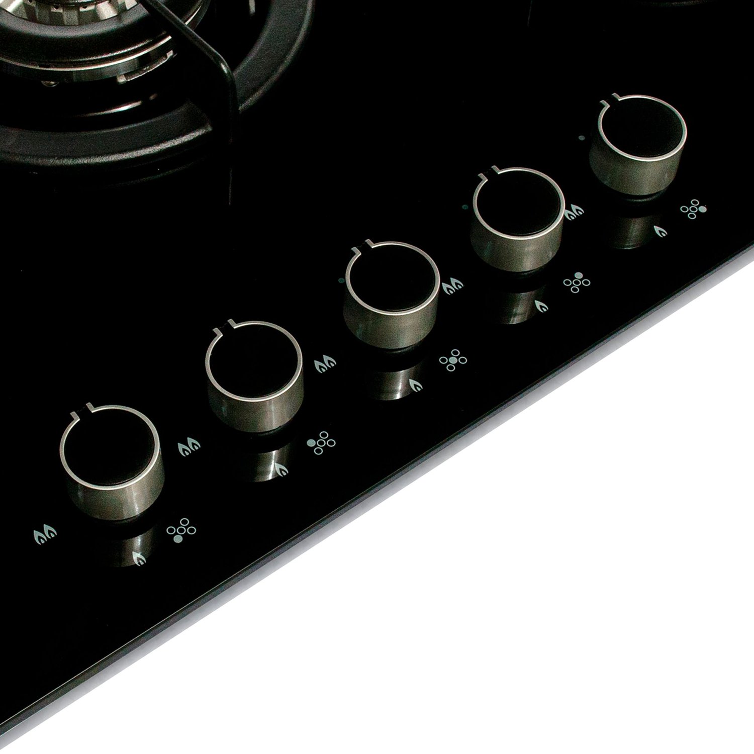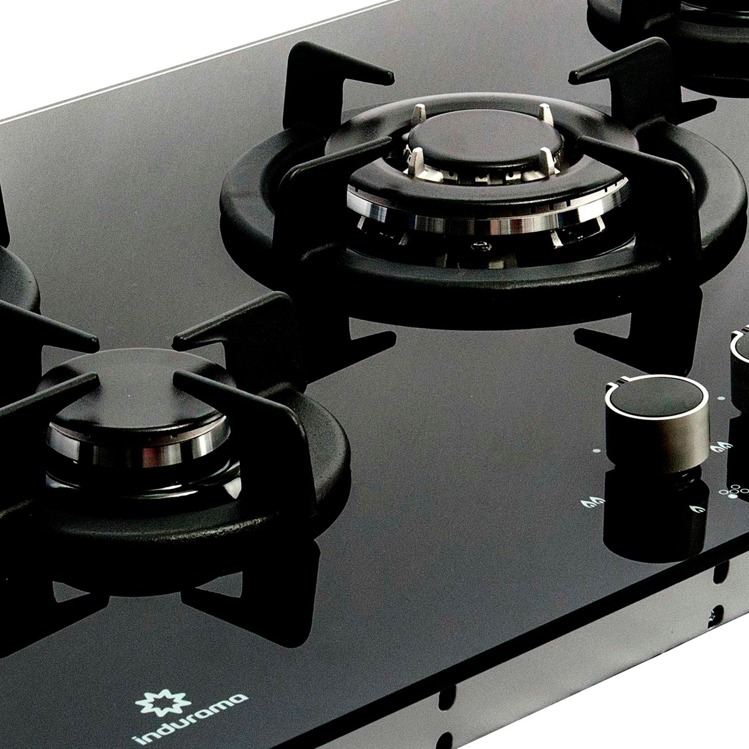 | Características | Tablero en 8mm vidrio templado negro extraresistente. Encendido directo en perillas. Sistema de quemadores herméticos. Quemador ultra rápido (triple corona). Parrillas individuales de hierro esmaltado. |