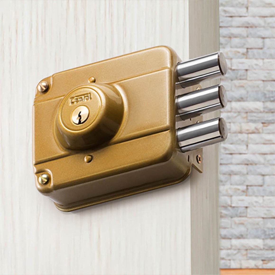 La Cerradura de Sobreponer Blindada 300 Cantol es reversible, lo que significa que se puede instalar en puertas que abren hacia la derecha o hacia la izquierda. Su color dorado le da un toque elegante a tu puerta. Esta cerradura es ideal para puertas de entrada y te ofrece una protección adicional para tu hogar.