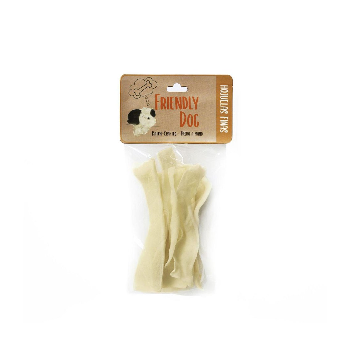 Las Hojuelas Finas Friendly Dog son un snack de carne, con un tamaño de 4 cm de largo y 13 cm de ancho. Son perfectas para perros de todas las edades y son una excelente opción para mantener a tu perro entretenido y satisfecho.
