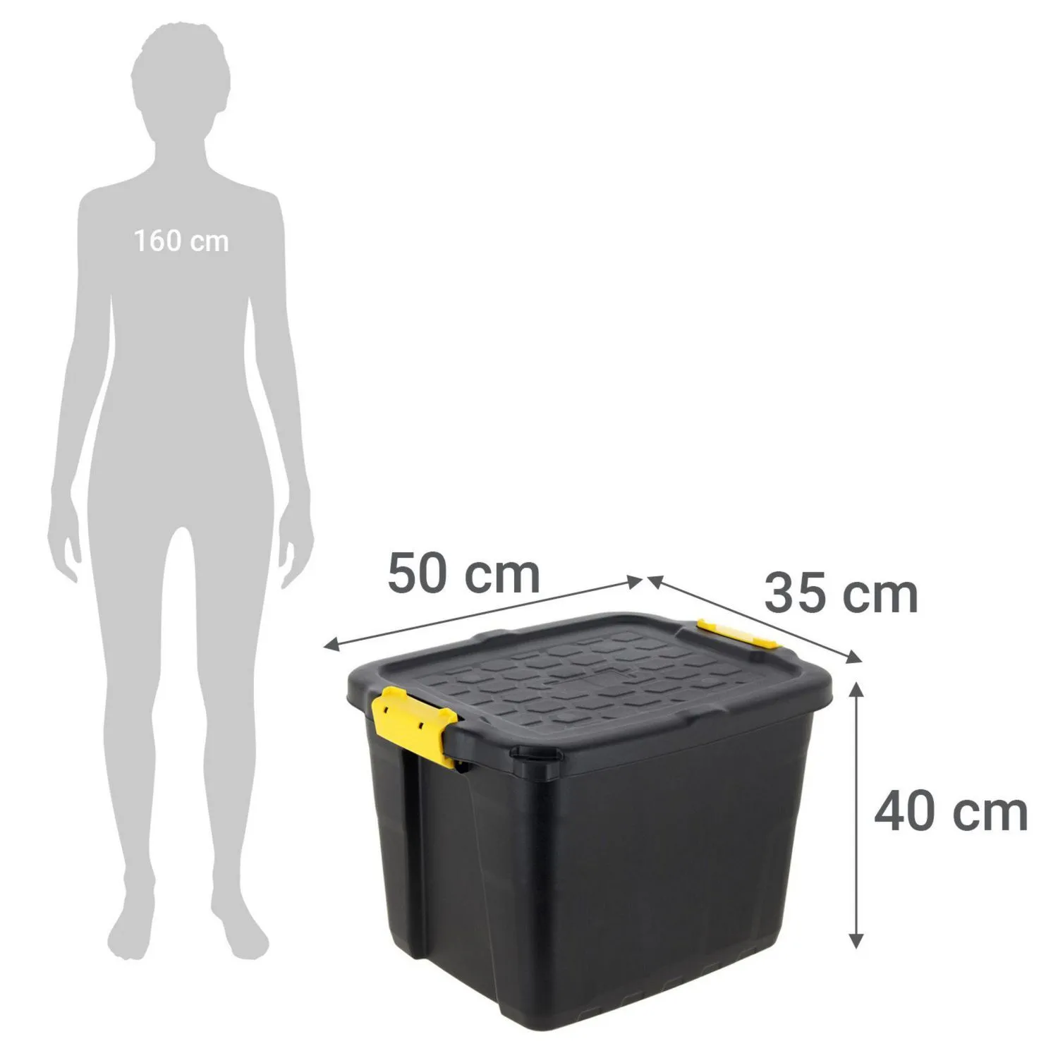 ¡Optimiza tus espacios con la Caja Organizadora Heavy Duty de 42L! Fabricada en plástico de alta resistencia, esta caja con asa es perfecta para apilar y resistir el uso diario. Con un diseño urbano industrial y color negro con broches amarillos, es ideal para mantener tus pertenencias seguras y organizadas en cualquier lugar de tu hogar.