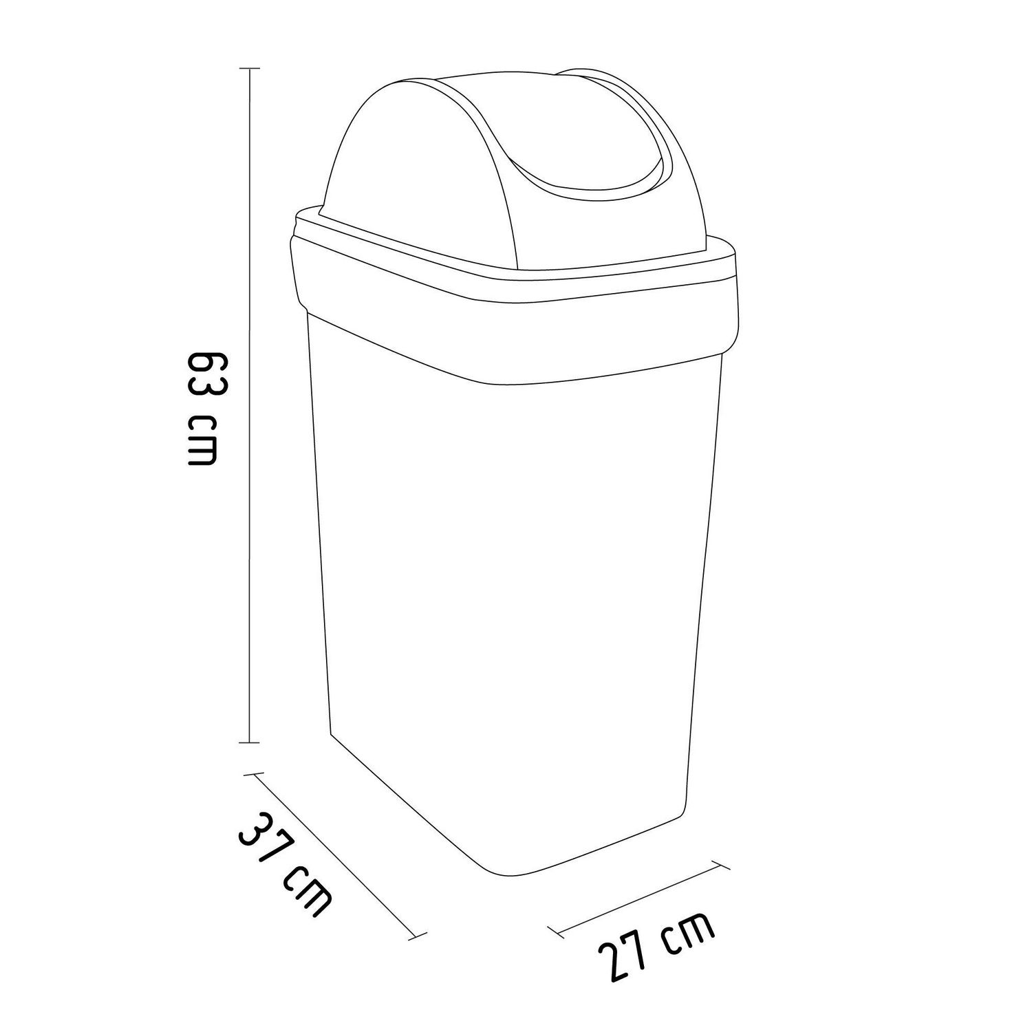 Este basurero está fabricado con materiales de alta calidad, como polietileno de alta densidad para el cuerpo y polipropileno para la tapa, lo que le otorga resistencia al impacto y durabilidad. Su diseño de basurero de vaivén te permite desechar tus residuos de forma rápida y sencilla. Además, su tamaño compacto de 37.7 cm de largo, 27.2 cm de ancho y 63.2 cm de alto lo hace ideal para espacios reducidos. ¡Mantén tu espacio limpio y ordenado con este práctico basurero!