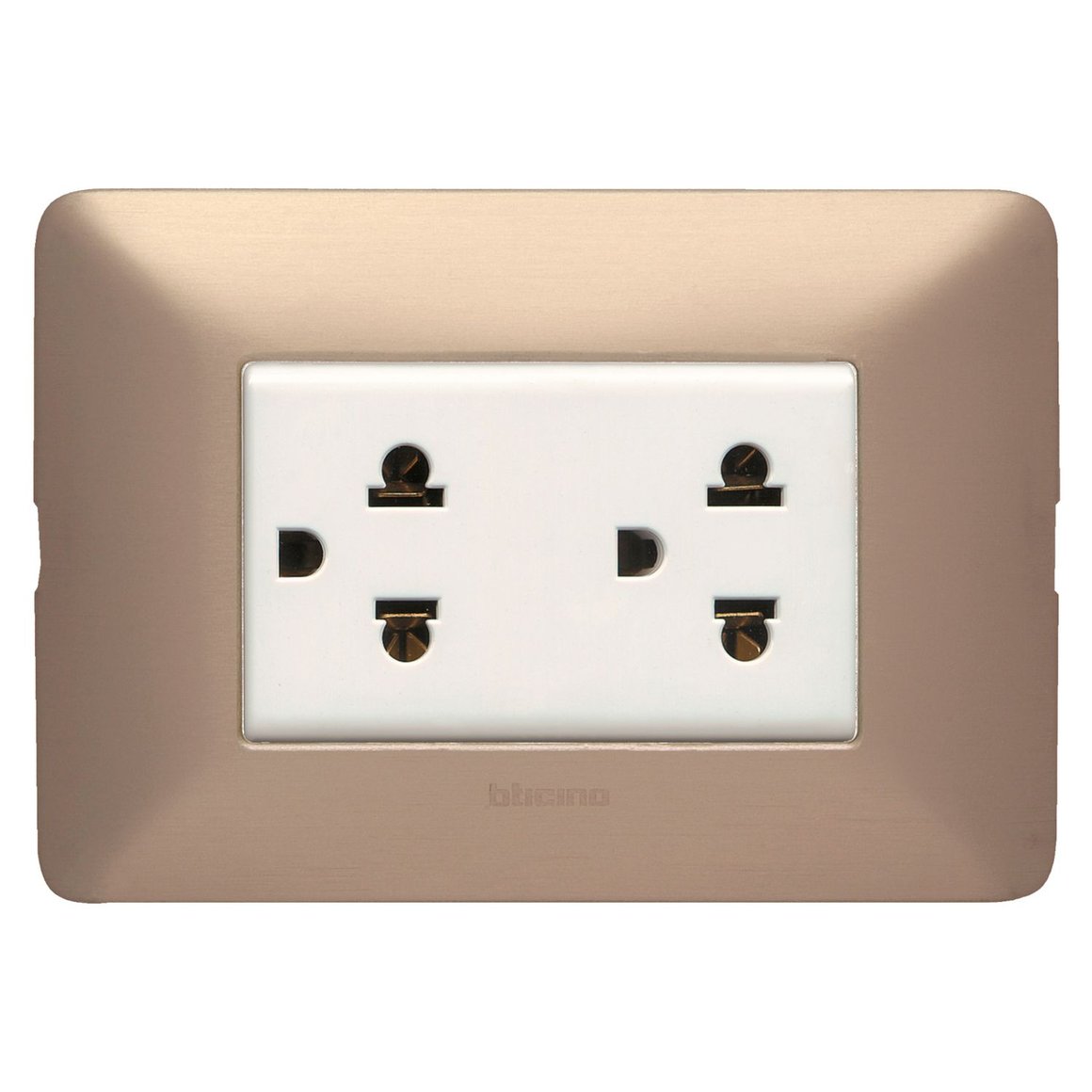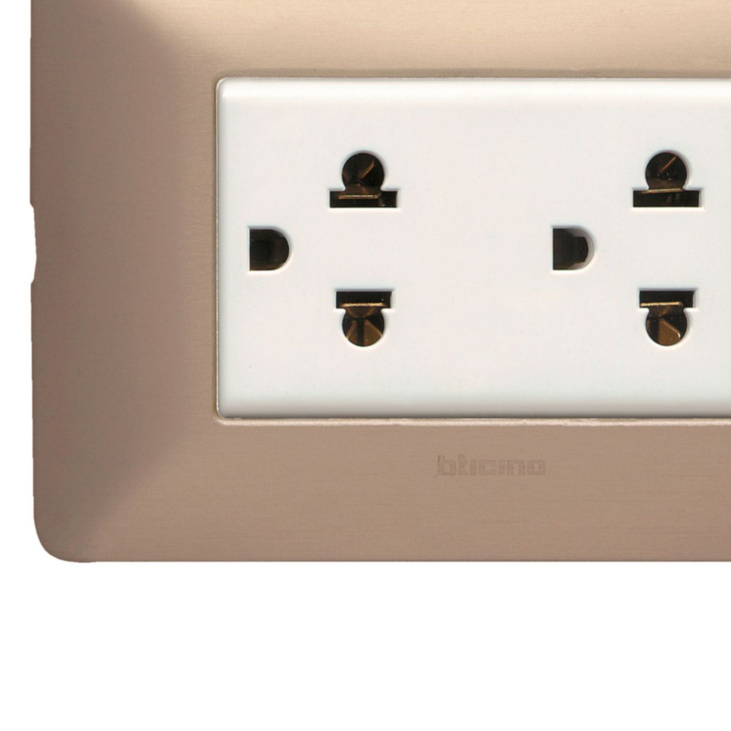 El Tomacorriente Doble P/T Matix Champagne de Bticino es una excelente opción para tu hogar. Cuenta con dos tomacorrientes, lo que te permite conectar varios dispositivos al mismo tiempo. Además, su voltaje de 250 V y amperaje de 16 A te brindan la seguridad que necesitas. Su diseño de placa embutida se adapta perfectamente a cualquier pared, y su material de aluminio le da un toque de elegancia.