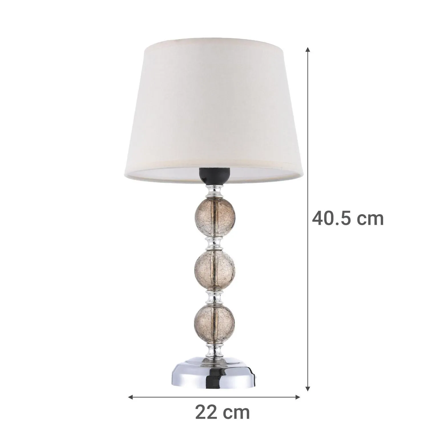 Esta lámpara de mesa, de la marca Just Home Collection, requiere de una ampolleta E27 y tiene un estilo clásico. Su color gris y material de metal y vidrio, la hacen perfecta para uso interior. Con una potencia máxima de 30 W y un largo de cable de 130 cm, ofrece una iluminación ideal para tus ambientes.