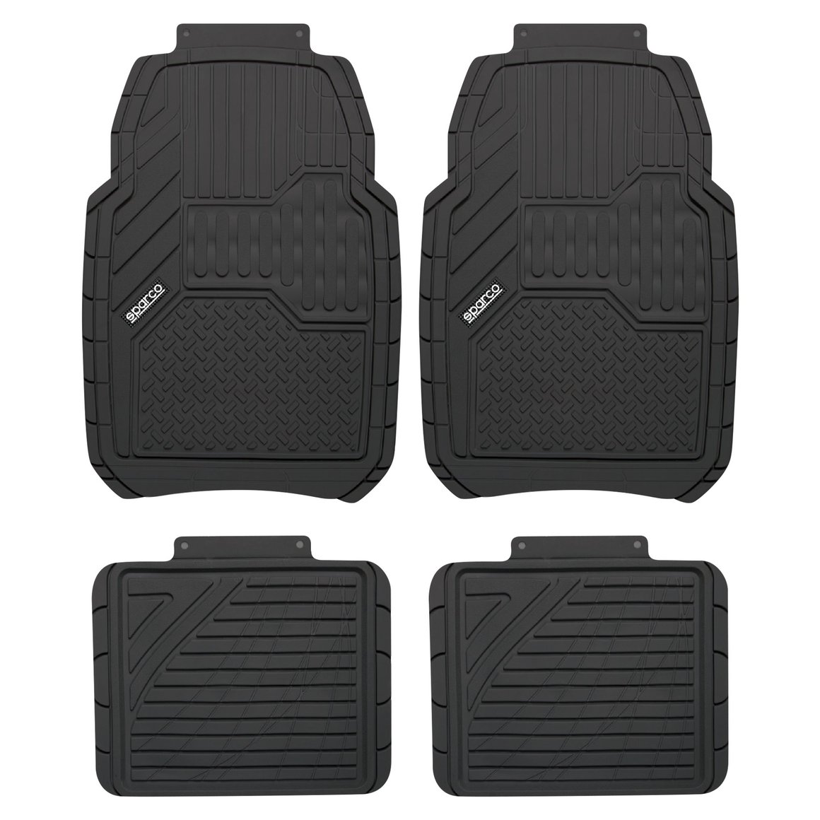 | Características | Pisos de goma para auto. De material grueso. Tipo Weather Tech. Modelo universal. Las 4 piezas son lavables. Incluye: Dos tapetes fronales y dos tapetes traseros. Modelo: SPC-1917BK |