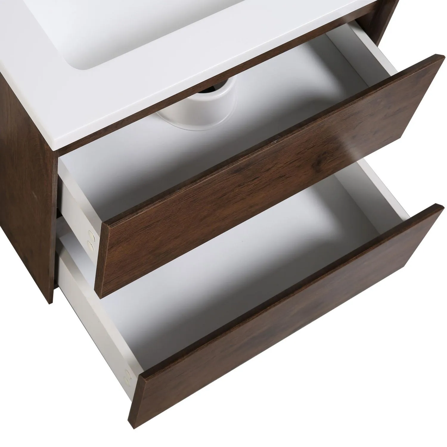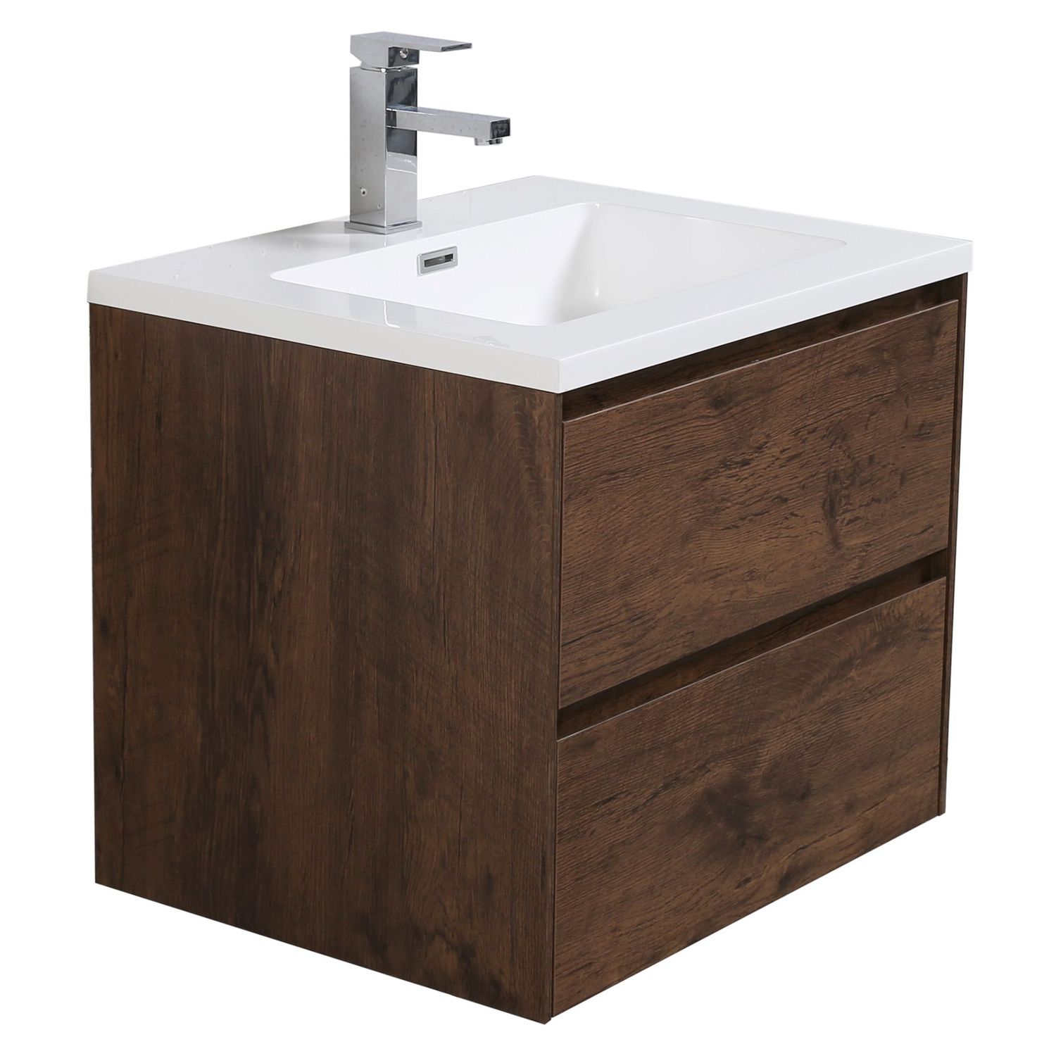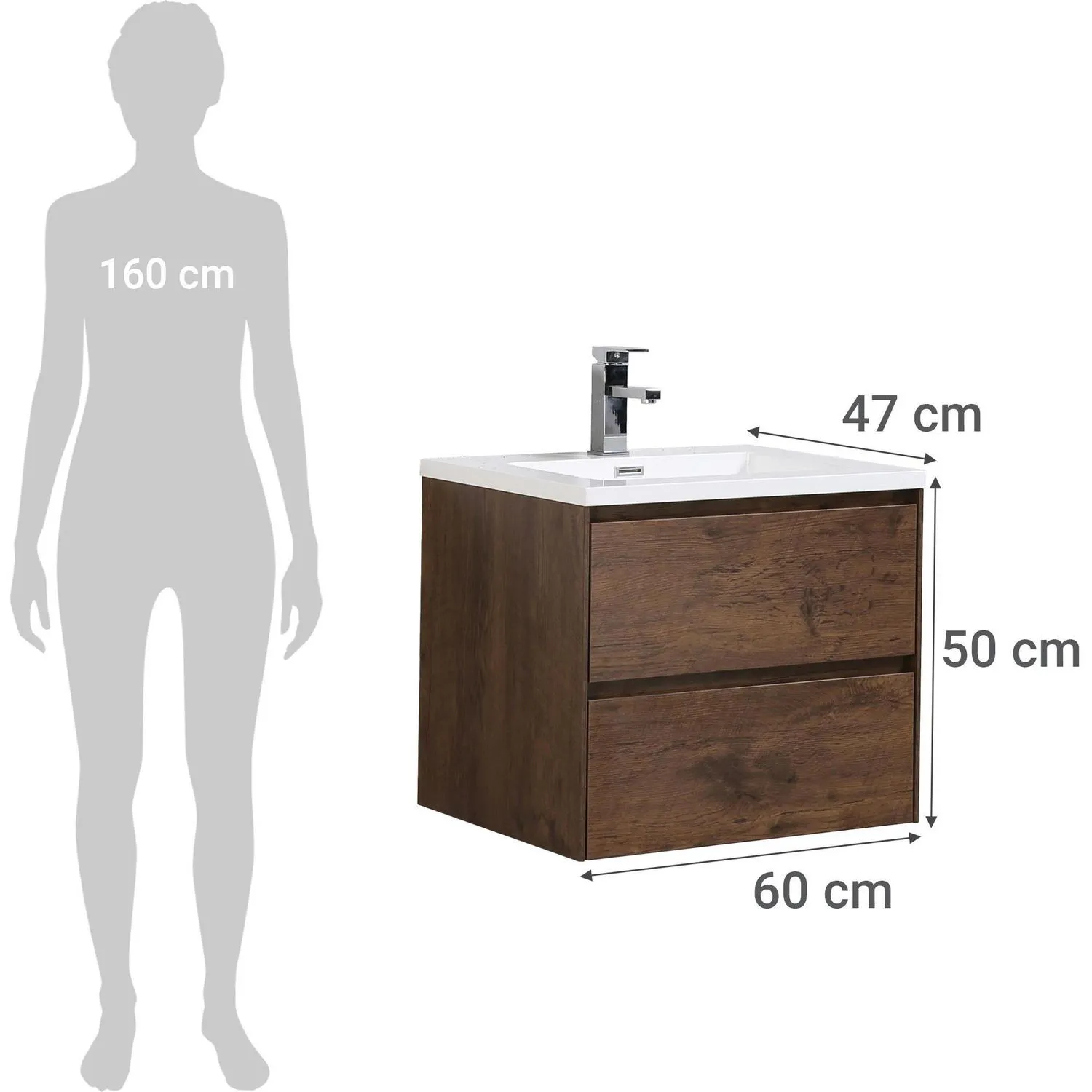 Este mueble vanitorio de Sensi Dacqua, fabricado con PVC de alta calidad, garantiza durabilidad y resistencia a la humedad. Cuenta con un lavamanos de mármol sintético, que ofrece mayor resistencia a rayones y manchas. Sus cajones con correderas telescópicas ocultas y cierre suave, te brindan una experiencia de uso superior. El mueble incluye el lavamanos, y su diseño rectangular y color chocolate lo hacen ideal para complementar cualquier estilo de decoración.