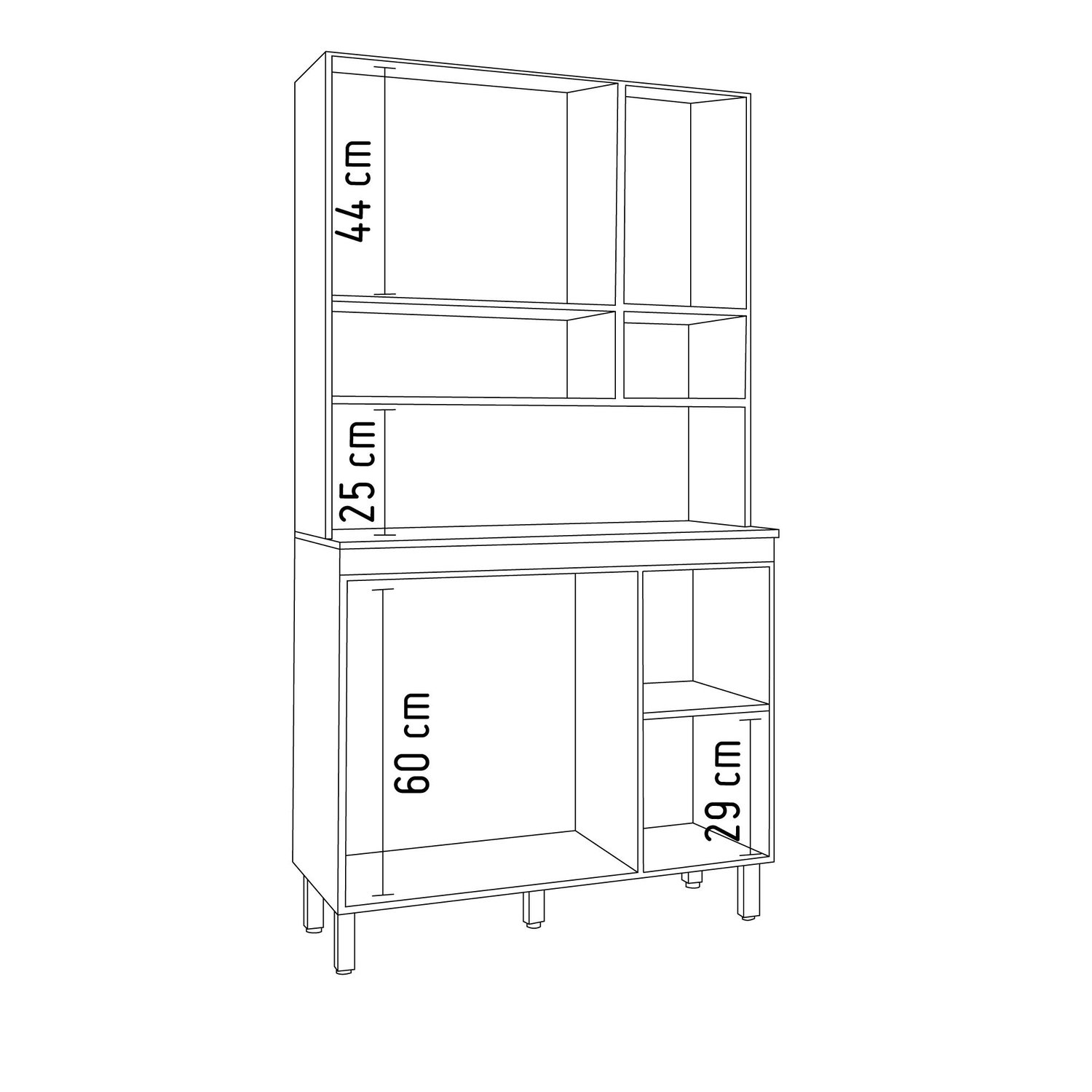 La alacena cuenta con una estructura de MDP de 12mm de espesor y puertas de 15 mm, ofreciendo durabilidad y resistencia. Sus tiradores de PVC y bisagras metálicas aseguran una larga vida útil. Con unas dimensiones de 91 cm de ancho, 39 cm de profundidad y 171 cm de alto, esta alacena es ideal para cualquier cocina. Además, incluye manual de armado y herrajes para una fácil instalación.