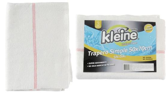 Entre sus características están el medir mide 48 cm de ancho por 68 de largo, lo cual también te ayudará a realizar el trabajo de manera más rápida, ya que abarcarás mayor espacio en un solo movimiento. Además, estos traperos son súper absorbentes y, algo importante, no dejan pelusas por donde se pasan.Este producto vienen sin ojal y cuentan con 3 meses de garantía.