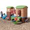 Este juego está fabricado con plástico resistente, ideal para el jardín. Cuenta con una capacidad para 4 personas y soporta un peso máximo de 97.1 kg. Además, la casa soporta hasta 110 kilos de peso en la plataforma, garantizando horas de juego seguro. El color marrón le da un toque acogedor y natural, perfecto para cualquier espacio exterior.