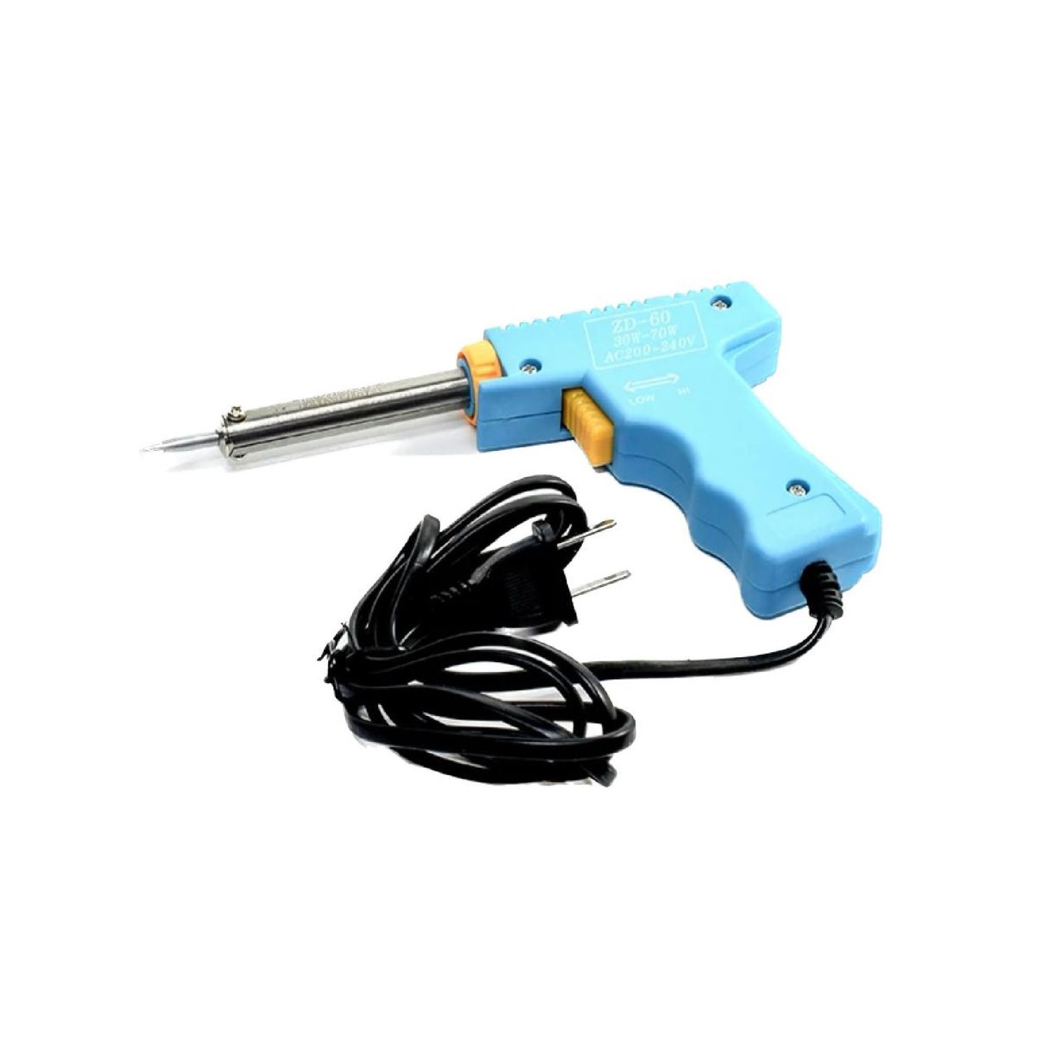 El Cautín Tipo Pistola 70W de Takema es un producto de tipo amateur, con un diseño que incluye un mango de aglomerado de madera y una cabeza de acero. Su color celeste le da un toque moderno y atractivo. El cautín requiere precalentado y es ideal para soldadura de cautín. Funciona con un voltaje de 220V y su modelo es ZD-60.