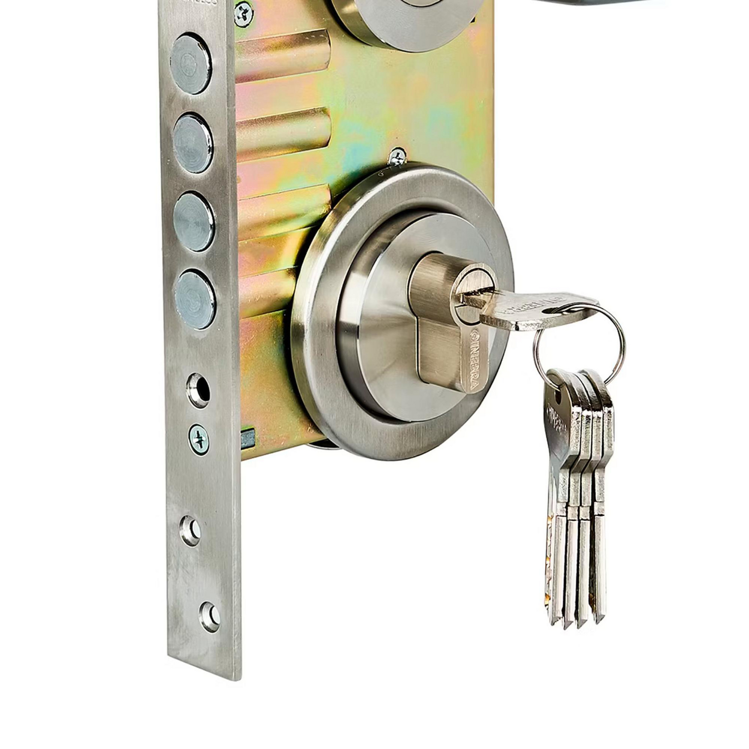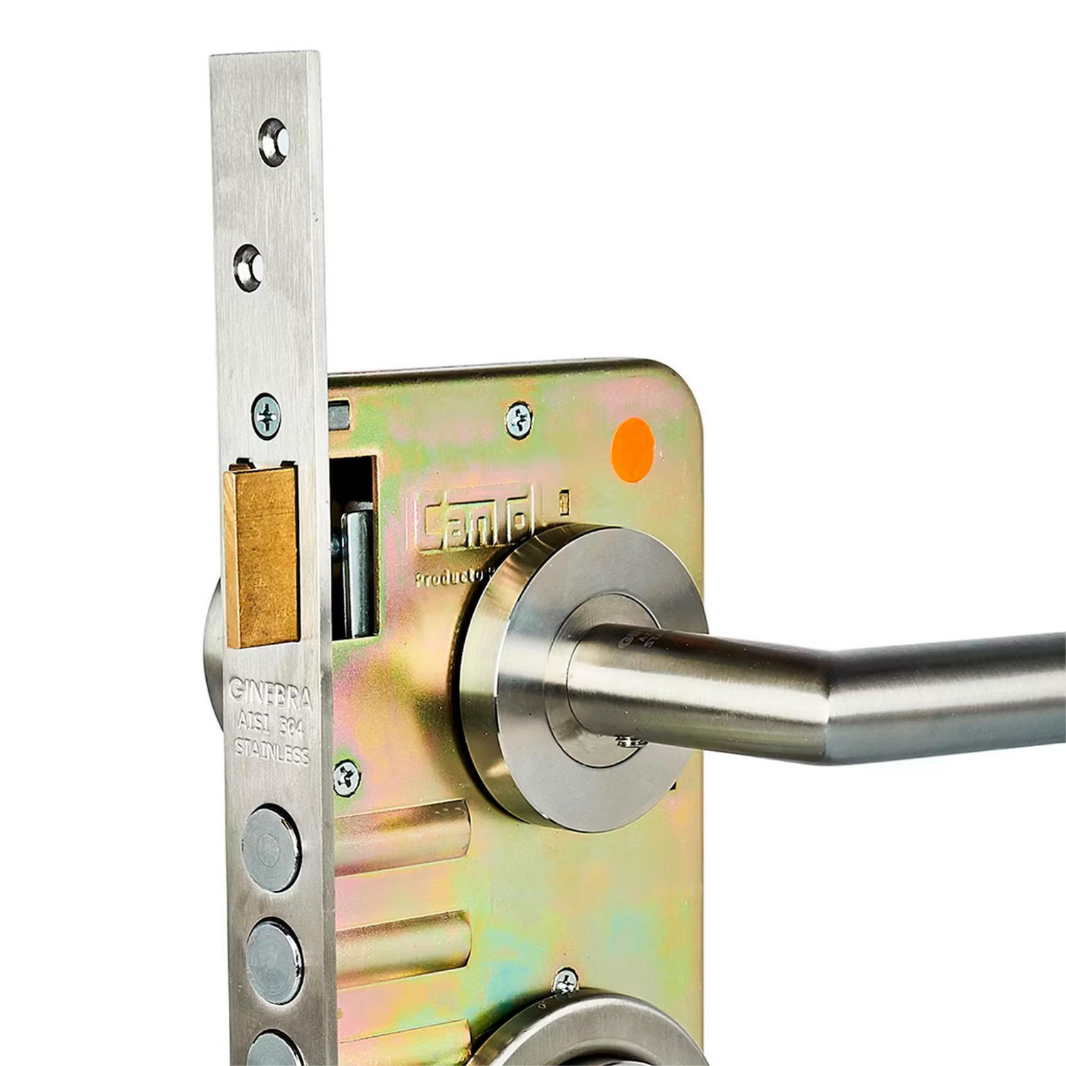 La Cerradura de Embutir Estándar Principal Estand Izquierdo Cantol cuenta con un largo de 28 cm y un espesor de 2.5 cm, lo que la hace ideal para puertas de diferentes tamaños. Su material de acero LAF de 1.5mm, bronce y acero inoxidable le brinda resistencia y durabilidad, mientras que su diseño reversible te permite instalarla en puertas que abren hacia la derecha o hacia la izquierda. Además, su color plateado le da un toque elegante a tu puerta.