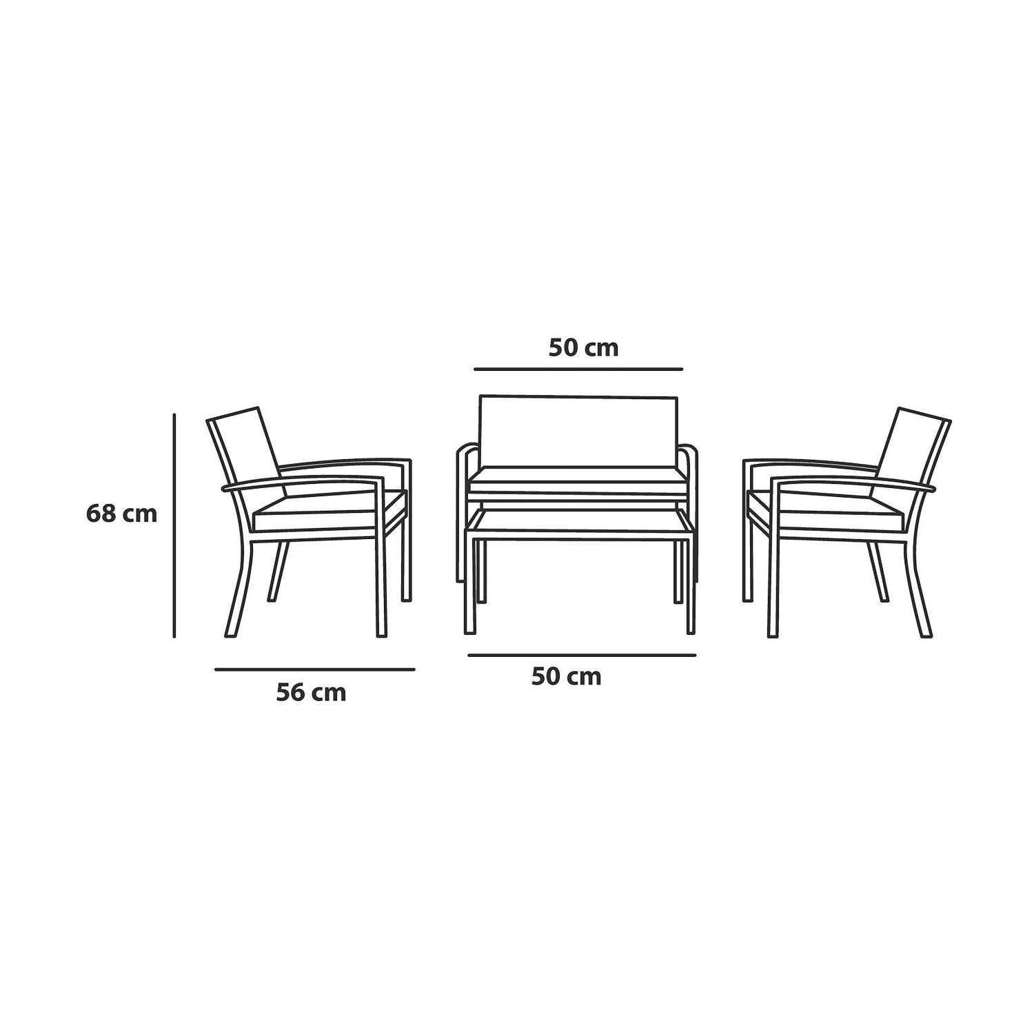 Este juego de living requiere armado y está fabricado en polirratán, un material resistente y duradero. El sofá mide 109x66x82 cm, los sillones 59x66x82 cm y la mesa 48,5x87x39 cm. Cuenta con apoyabrazos para mayor comodidad y está diseñado para uso doméstico. El juego incluye 1 sofá, 2 sillones y 1 mesa de centro, ideal para 4 personas.