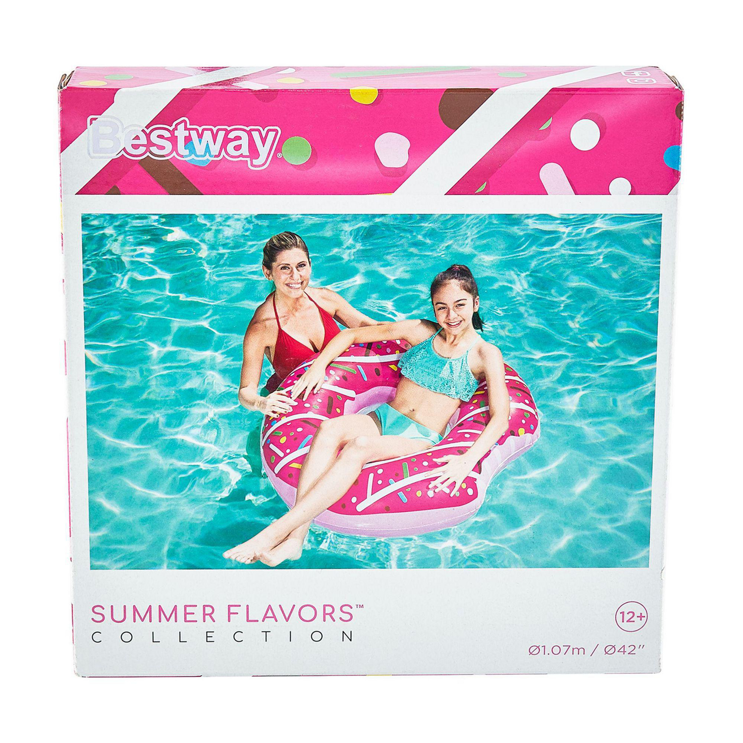 ¡Prepárate para el verano con el Flotador Aro Diseño Donut! Este flotador Bestway, con su diseño de donut de chocolate y frutilla, es perfecto para disfrutar del sol y el agua. Con un diámetro de 107 cm, es ideal para relajarte y divertirte en la piscina. ¡Añade un toque de diversión y estilo a tus días de verano!