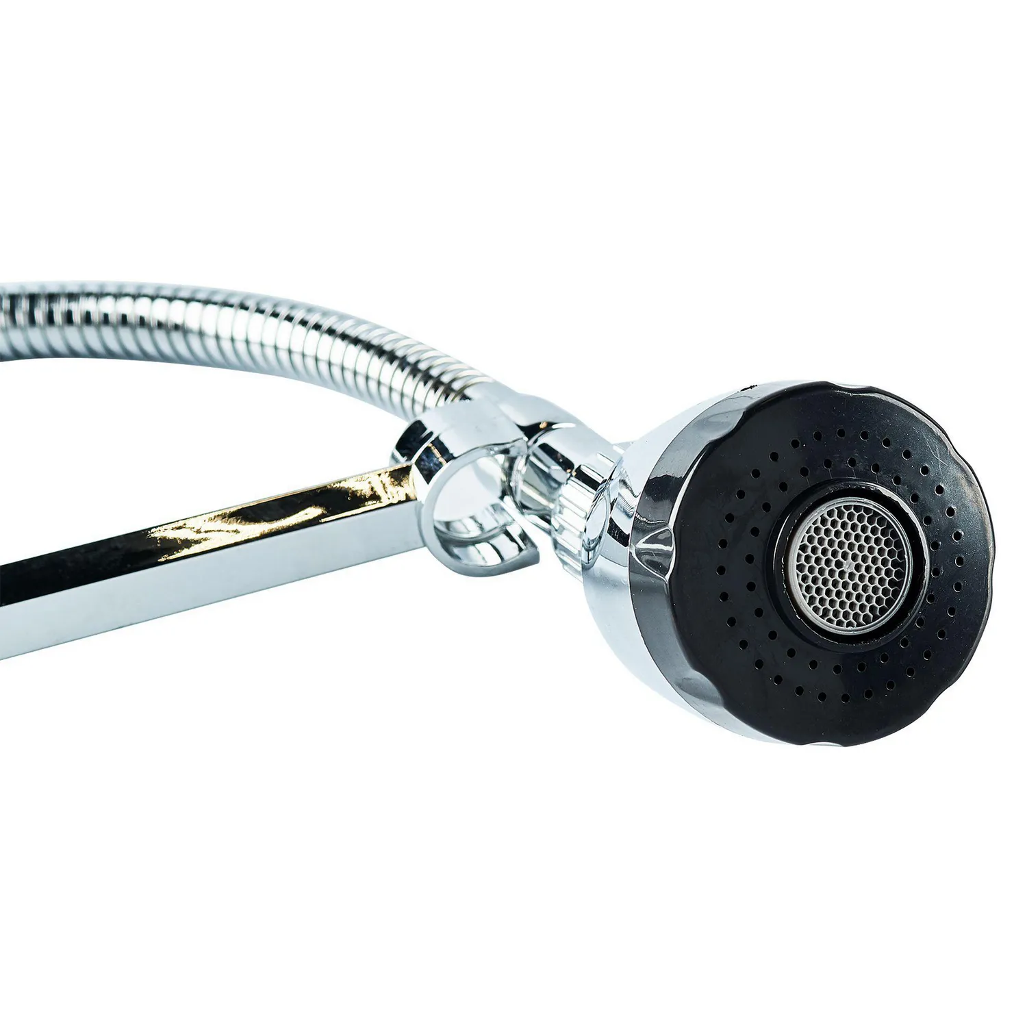 Dale un toque moderno a tu cocina con el Tubo Flexible para Lavadero de 65cm en color plata / negro. Este tubo flexible de acero te permitirá llegar a todos los rincones de tu lavadero con facilidad, gracias a su diseño flexible y su diámetro de 3 cm. ¡No te preocupes por la instalación, ya que viene con un filtro para evitar que los residuos obstruyan el flujo de agua!