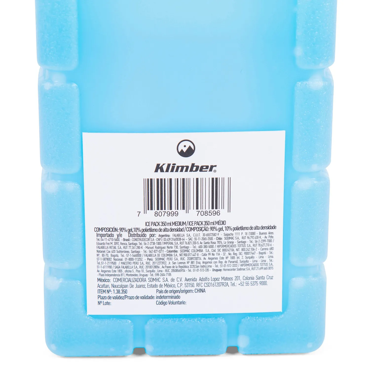 ¡Prepárate para tus aventuras al aire libre con el Ice Pack Klimber de 350 ml! Perfecto para mantener tus alimentos y bebidas frescos durante tus viajes en auto, campamentos o paseos familiares. Este práctico ice pack, con sus medidas de 12.2 cm de alto, 3.8 cm de ancho y 9.4 cm de profundidad, es reutilizable y fácil de usar. ¡No dejes que el calor arruine tus momentos especiales!