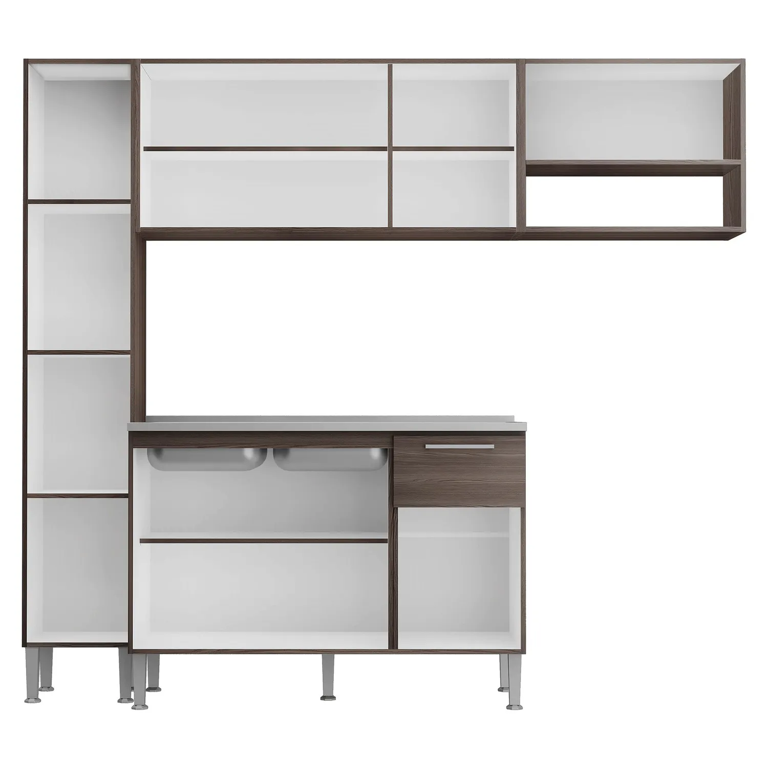Este mueble de cocina de la marca Genialflex, cuenta con repisas e incluye fijaciones para facilitar su instalación. Su estructura de MDP asegura durabilidad y resistencia. El mueble de cocina Pietra ofrece un estilo urbano industrial, ideal para quienes buscan un diseño moderno. Incluye herraje para armado y cuenta con una procedencia de Brasil.