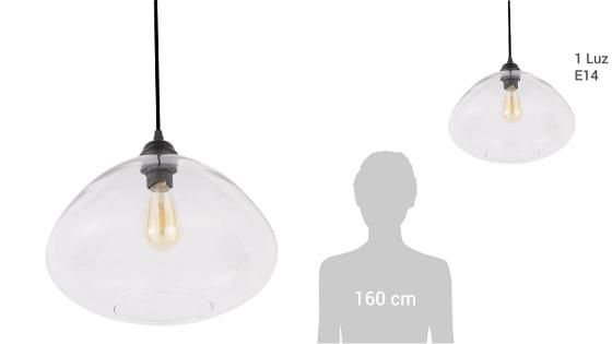 Lámpara Colgante Giza 1 Luz Acero Incoloro/Transparente 30 W 34 cm