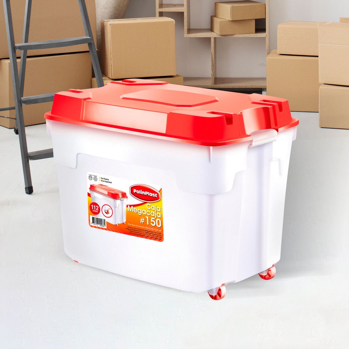 ¡Optimiza tu espacio con la Caja Organizadora con Ruedas #150 112L Blanco! Perfecta para mantener tus pertenencias en orden, esta caja de plástico es la solución ideal para dormitorios. Con su diseño práctico y versátil, podrás guardar ropa, juguetes y más, simplificando tu vida y manteniendo todo organizado.