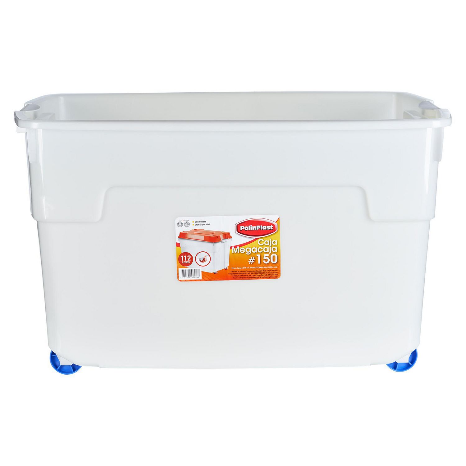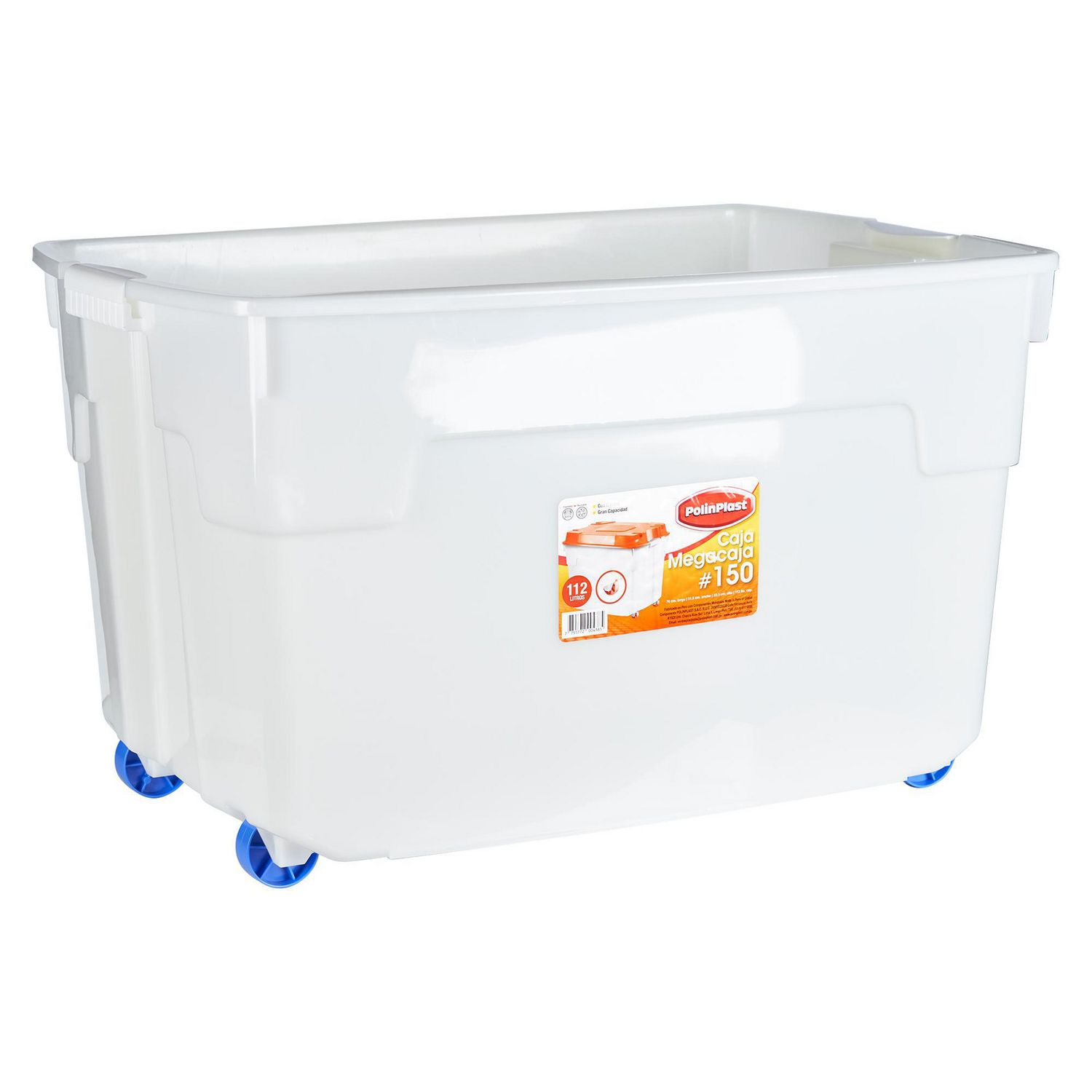 Esta caja organizadora de la marca Polinplast, con una capacidad de 112 l, es perfecta para mantener tus cosas en orden. Sus dimensiones son de 53.5 cm de ancho, 76 cm de alto y 51.5 cm de profundidad, ideal para el dormitorio. Fabricada en plástico resistente, cuenta con 2 piezas y ruedas para facilitar su traslado.