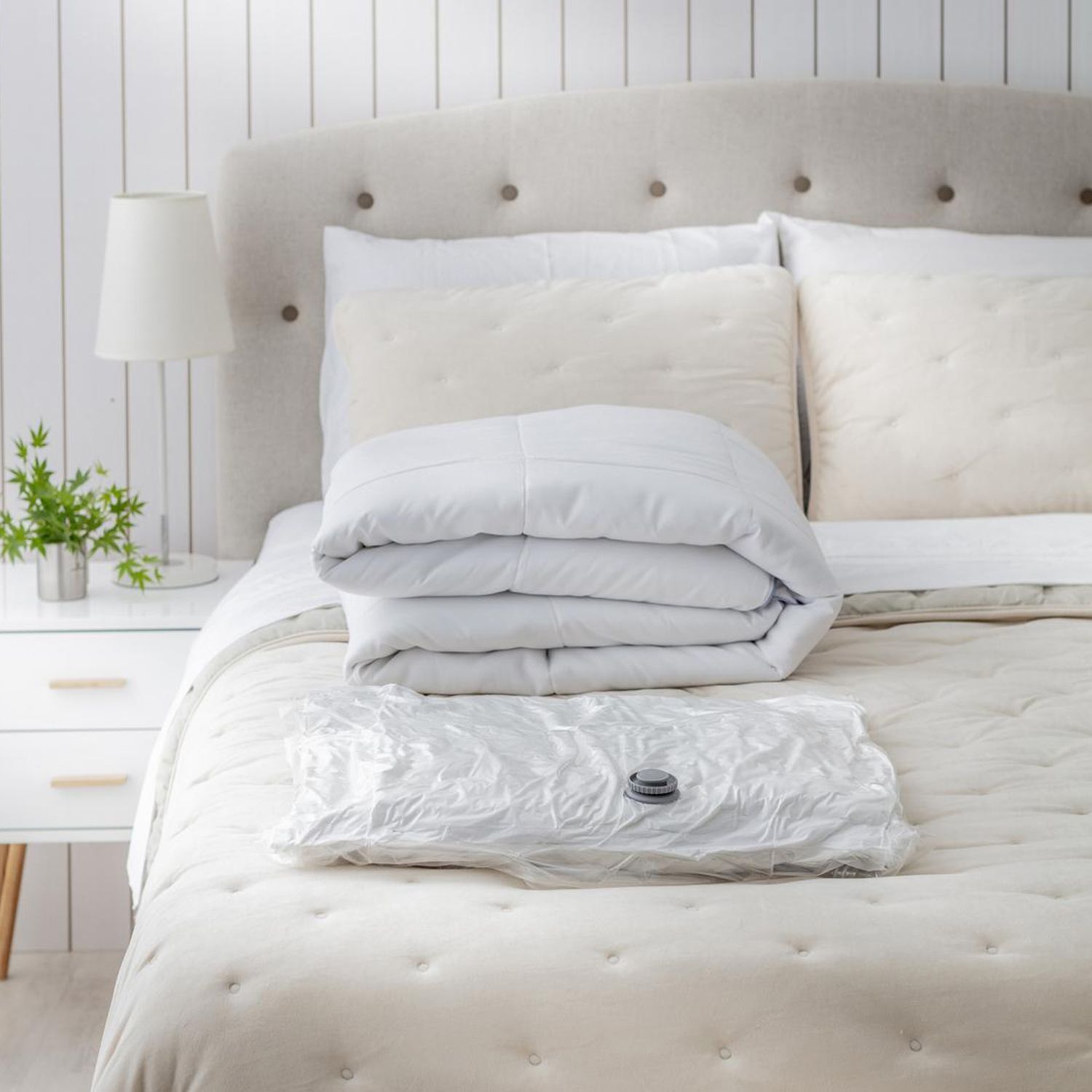 Esta bolsa multiuso de estilo clásico, fabricada en tela, es perfecta para usar en el dormitorio. Su diseño permite extraer el aire con una aspiradora, reduciendo el tamaño de tus pertenencias. El material de la bolsa protege el contenido del deterioro. Es un accesorio que te permite organizar tus artículos de manera eficiente.