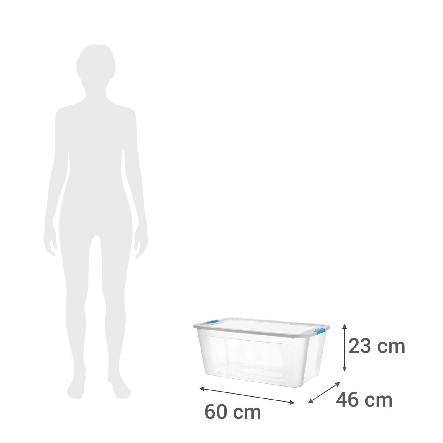 Esta caja organizadora Reyplast, con una capacidad de 46 l, es multiuso y está fabricada en polipropileno, lo que garantiza su durabilidad. Sus dimensiones son de 59.7 cm de ancho, 24 cm de alto y 46.4 cm de profundidad. Incluye 2 piezas, ideal para organizar tus cosas de manera eficiente.