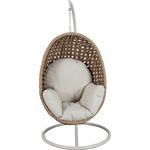 La Silla colgante ratán pe blanca, de Home Collection, modelo Egg, solo quiere que goces tranquilamente de los espacios de tu hogar o residencia en los que decidas colocarla, si deseas, de manera itinerante incluso, pues incorpora también un soporte que puedes ir desplazando a tu gusto. De un relajante y combinable color blanco, está confeccionada en base al multifacético poliratán, por lo que su limpieza te será muy sencilla y su durabilidad la tendrás asegurada por años. Desmontable, sus medidas son 96x61x118 cm y las dimensiones de su soporte son 95x195 cm. Esta encantadora e íntima silla colgante es importada y tiene una garantía de 3 meses.