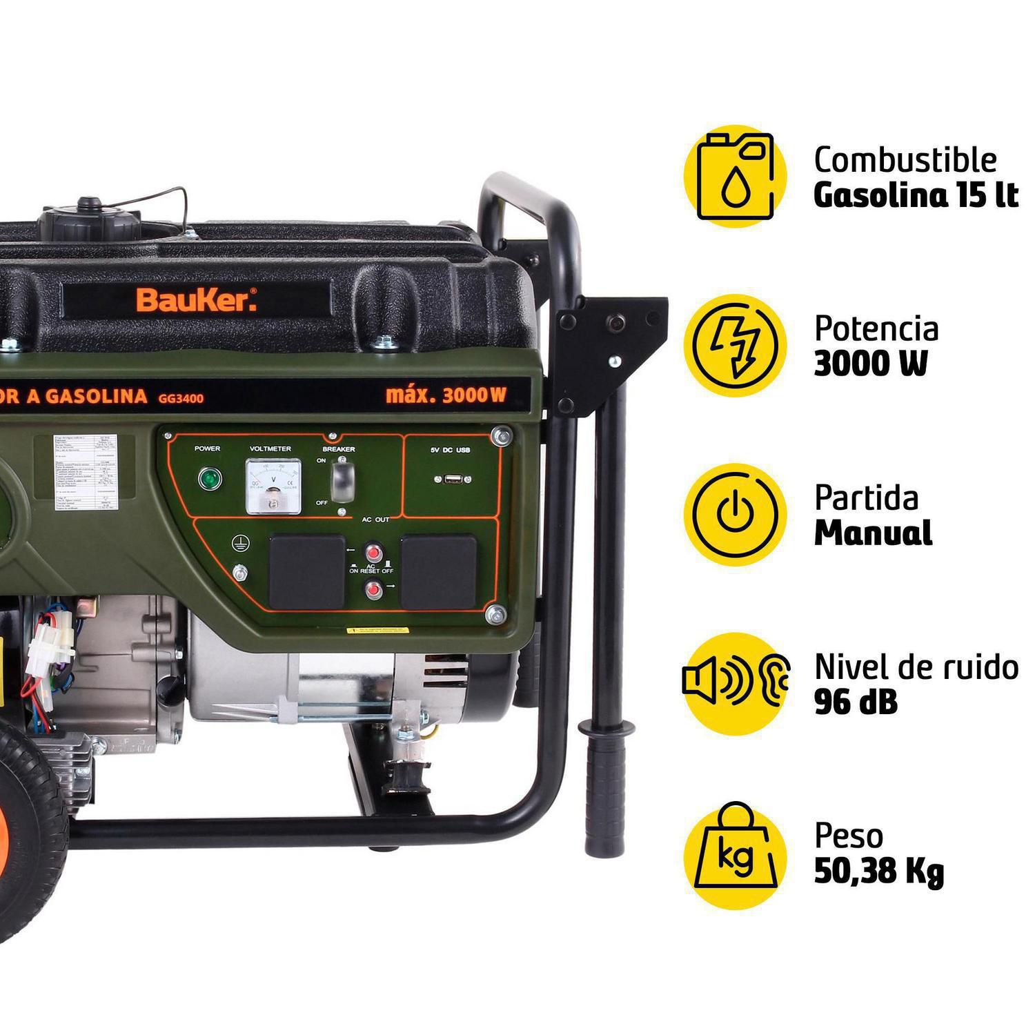 ¡Potencia y rendimiento al alcance de tu mano! El Generador a Gasolina 3300W Bauker es la solución ideal para tus necesidades de energía. Con su potente motor de 4 tiempos y 3300W de potencia máxima, podrás alimentar tus herramientas y dispositivos con facilidad. Además, su diseño compacto y fácil de transportar lo convierte en el compañero perfecto para cualquier proyecto.