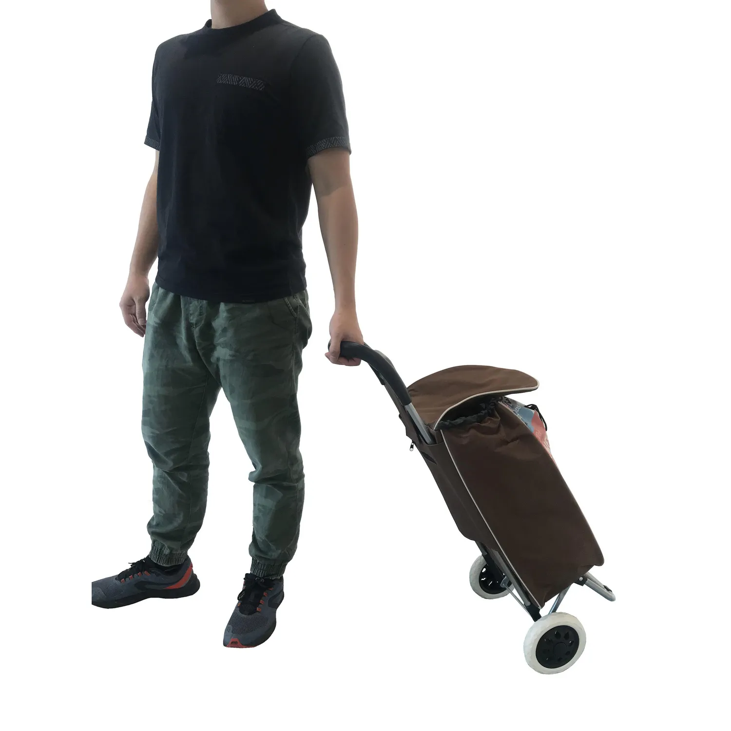 Este carrito de compras cuenta con unas dimensiones de 28 cm de largo, 35 cm de ancho y 95 cm de alto, ideal para transportar hasta 40 kg. Está fabricado con poliéster, tanto en la tela como en la estructura, lo que garantiza su resistencia y durabilidad. ¡Lleva tus productos con comodidad y seguridad!