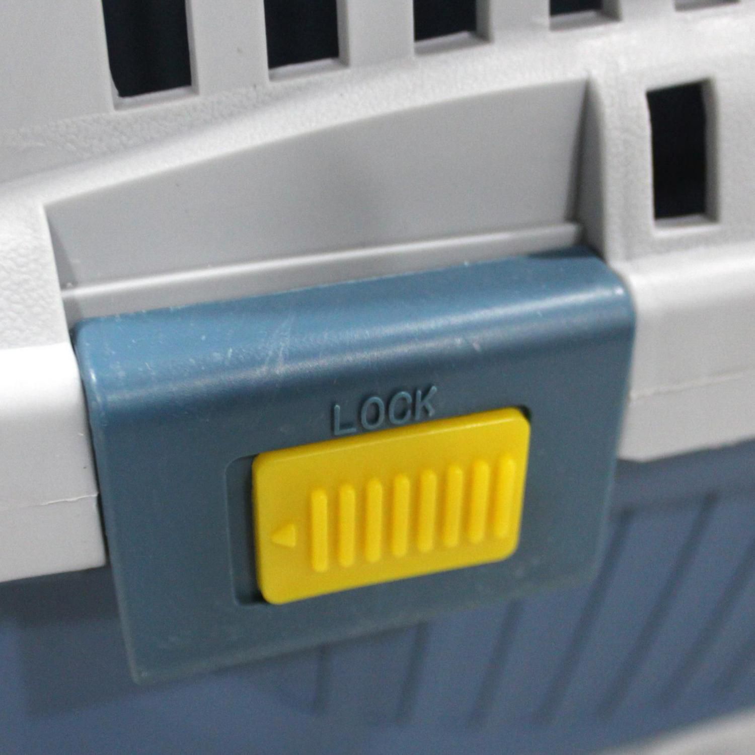 Esta jaula de transporte, fabricada en plástico resistente, cuenta con un sistema seguro de bloqueo para garantizar la seguridad de tu mascota. Su forma rectangular facilita su transporte, ya sea en el auto o en avión. Además, es ideal para perros de raza mediana.