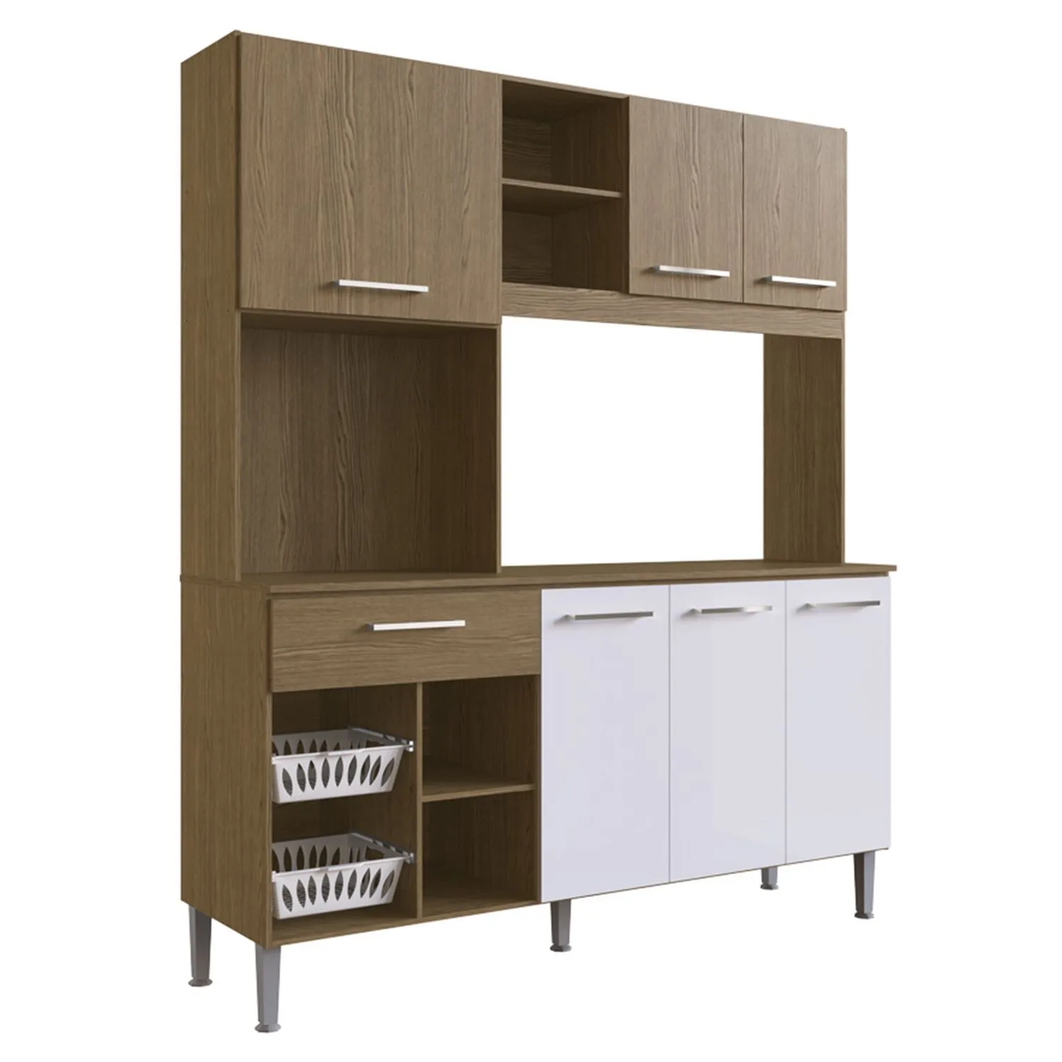 La Alacena Fiamma es el mueble perfecto para tu cocina. Con su diseño en color Rovere y puertas blancas, le dará un toque acogedor a tu hogar. Cuenta con espacios para organizar tus utensilios, además de 2 espacios adicionales para almacenar frutas y verduras. ¡Es la solución ideal para mantener tu cocina ordenada y con estilo!
