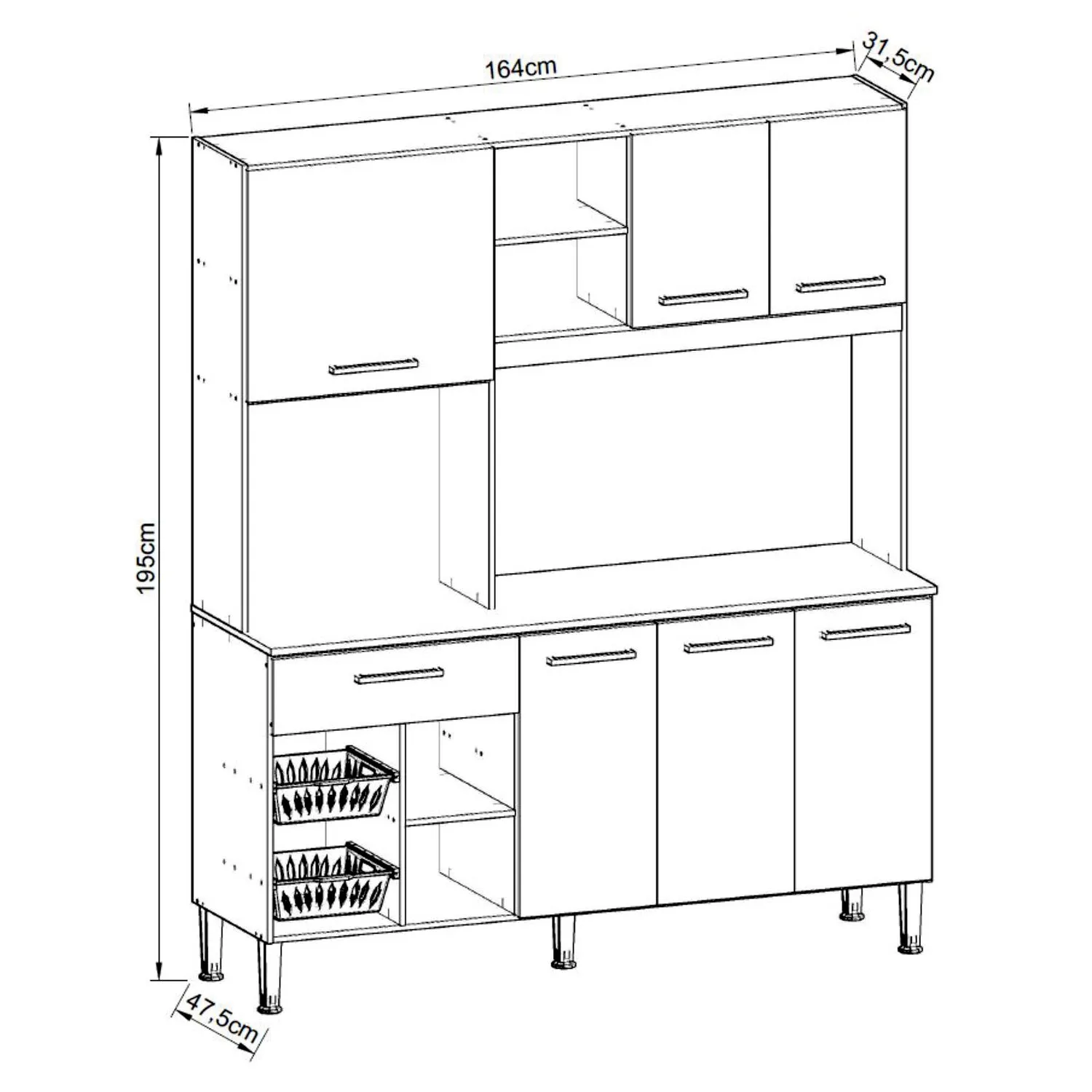 Esta alacena de 195 cm de alto y 164 cm de ancho, está fabricada en melamina y madera aglomerada, materiales resistentes al rayado y al hinchamiento. Incluye 6 puertas con bisagras metálicas y un cajón con correderas metálicas, además de 5 repisas para organizar tus cosas. Su cubierta de melamina es de fácil limpieza, lo que facilita su mantenimiento. Incluye manual de armado y herrajes.