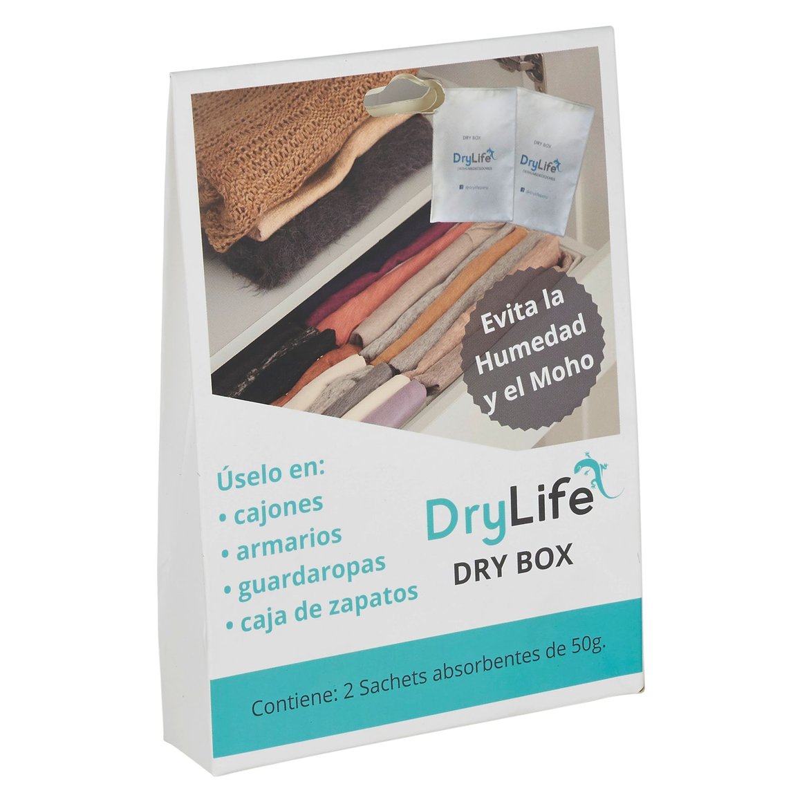 Dile adiós a la humedad y el moho con el Dry Box de DryLife. Este práctico producto te ayudará a mantener tus prendas y objetos libres de humedad, evitando que se deterioren. Contiene dos sachets absorbentes de 50g cada uno, ideales para cajones, armarios, guardarropas y hasta cajas de zapatos. ¡Protege tus pertenencias con DryLife!