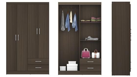 El Clóset 4 puertas 2 cajones de Casa Bonita está fabricado en MDP color caoba, material resistente y duradero con el paso del tiempo. El Clóset cuenta con 4 puertas ,2 cajones ,3 repisas divisorias,1 barra de colgar ,tiradores en PVC y espacio multifuncional .