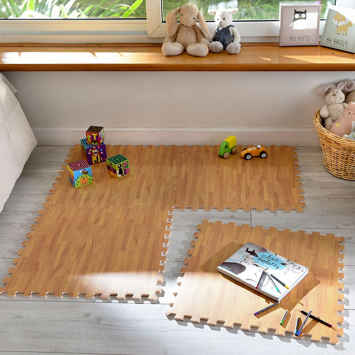 Este piso de goma está fabricado en polietileno, un material resistente y lavable, perfecto para el uso diario. Su diseño de madera en color café le da un toque moderno y acogedor a cualquier espacio. Además, su forma cuadrada y tamaño pequeño lo hacen ideal para cualquier rincón de tu hogar. El producto cuenta con 4 piezas que se encajan fácilmente, promoviendo la motricidad de tu hijo.