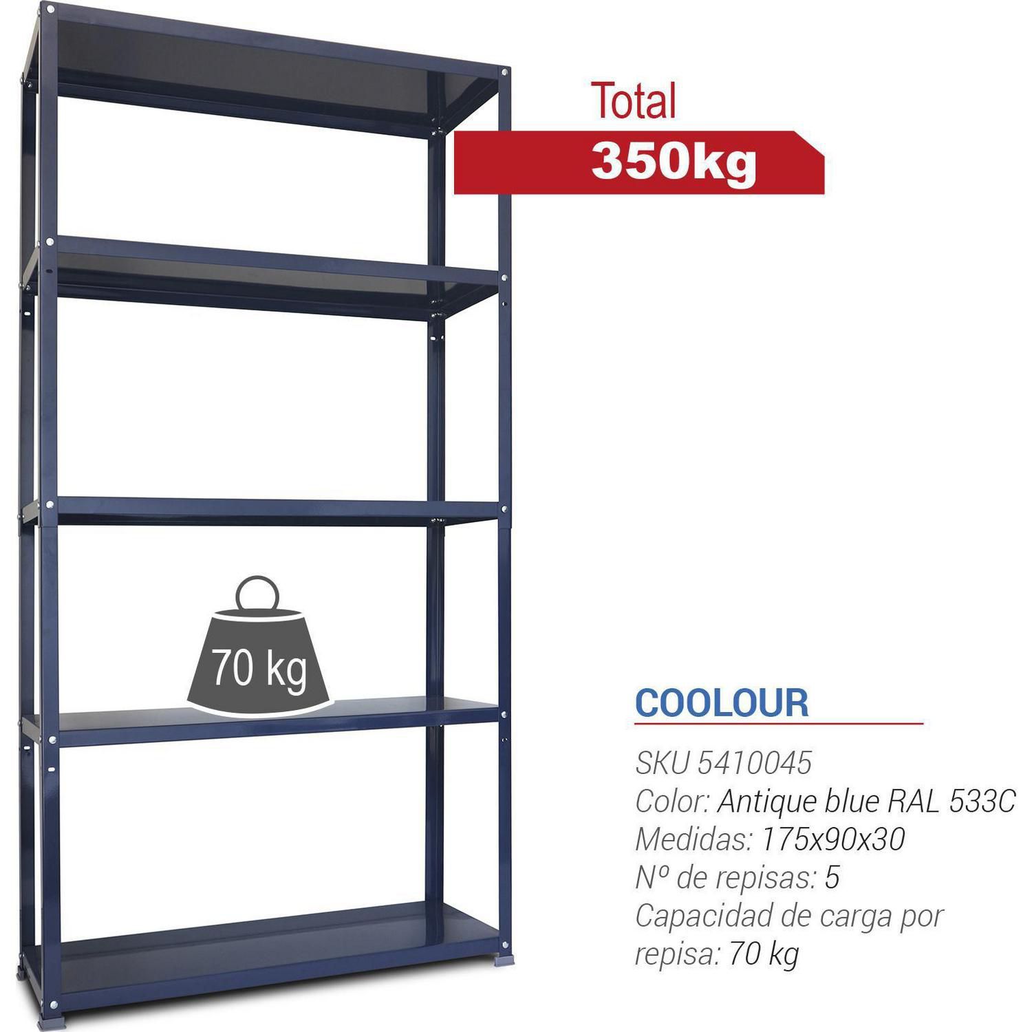 Estante Metálico 5 Niveles 90x30x172cm Azul 350 Kg