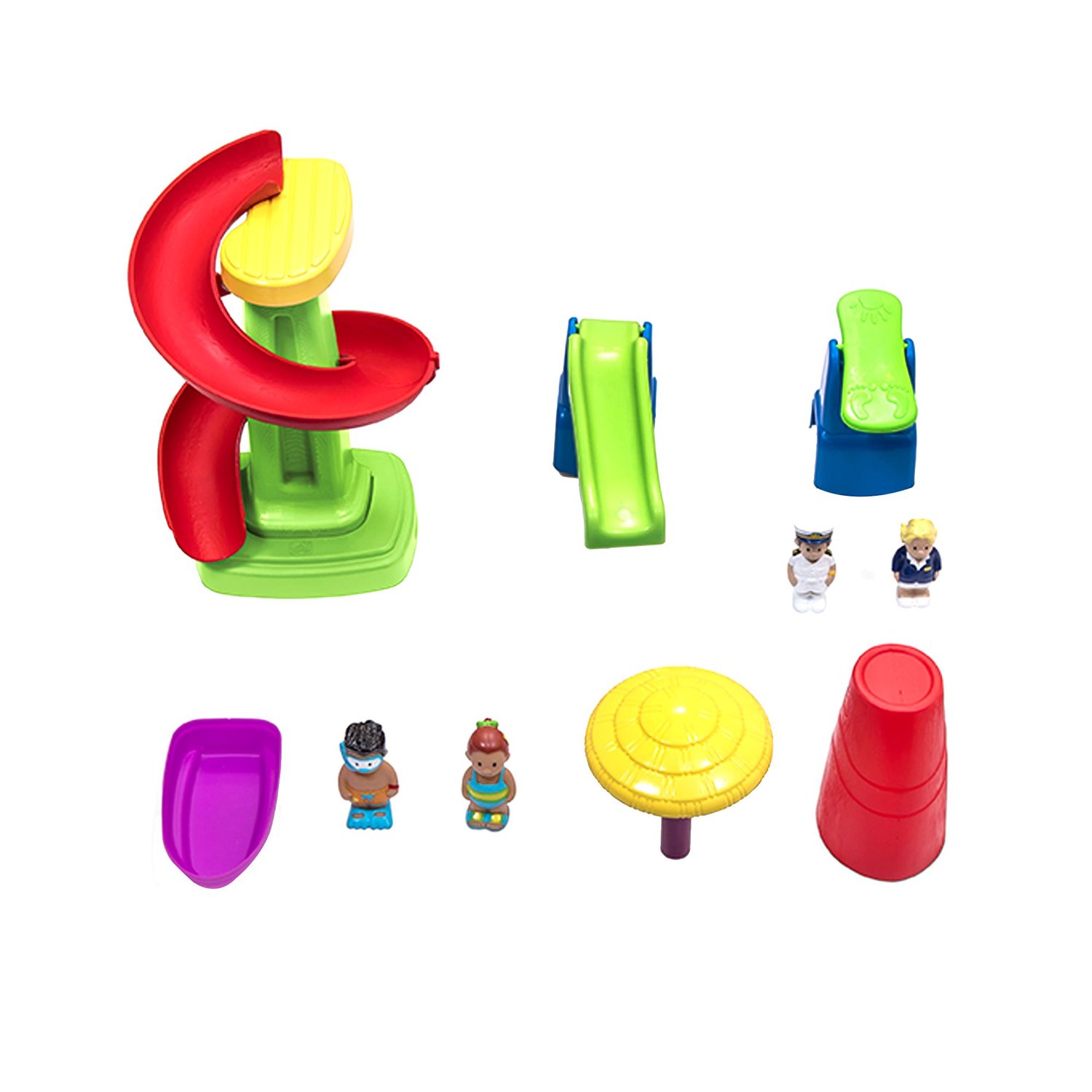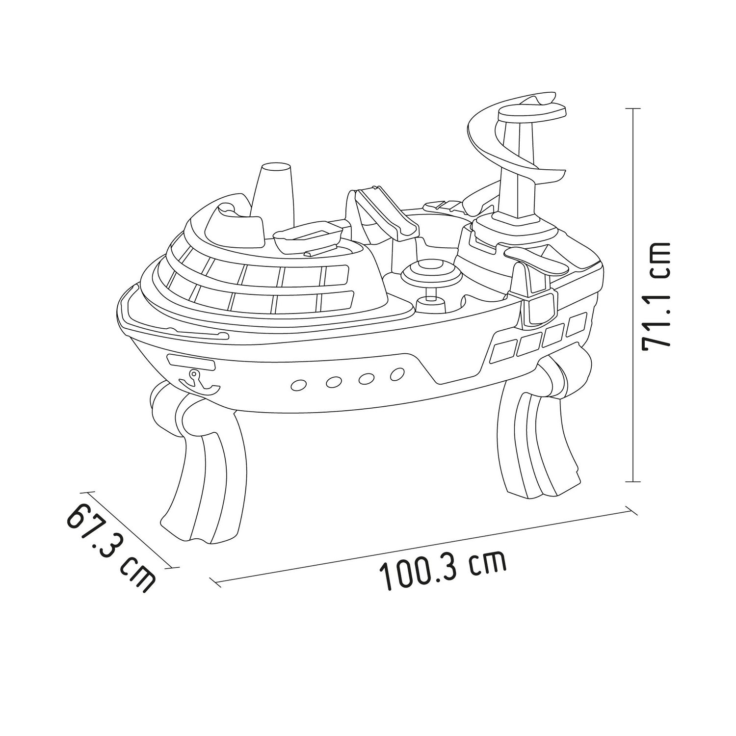 | Características | Divertida mesita con temática de barco tipo crucero, el cual cuenta con un tobogán. Tiene una división para colocar arena y los niños busquen el tesoro escondido. Para una limpieza rápida, la mesita tiene un tapón. Incluye accesorios (Tobogán, muñequitos y resbaladera). |