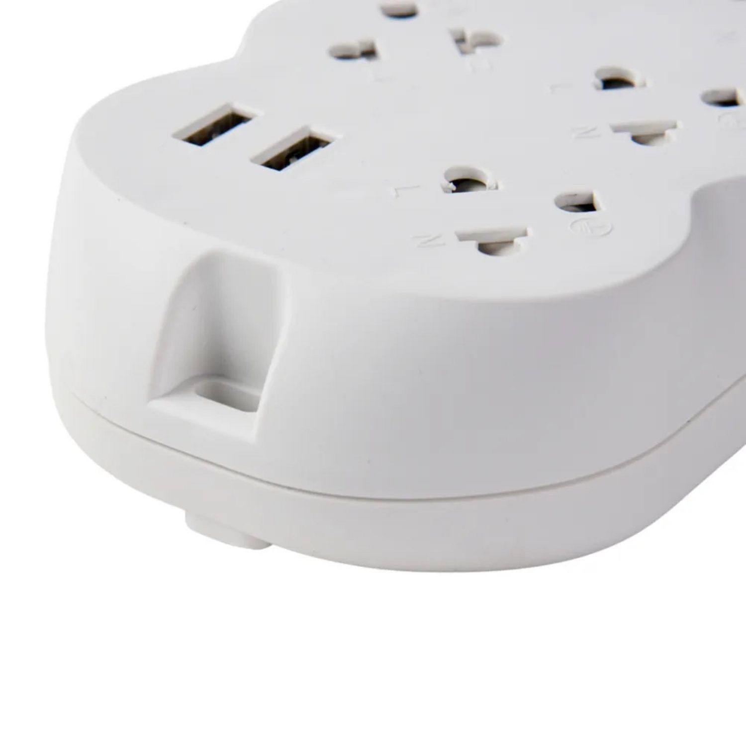 Extensión eléctrica 5 Tomas Universal 2 Puertos 3 USB 3 Metros Blanco