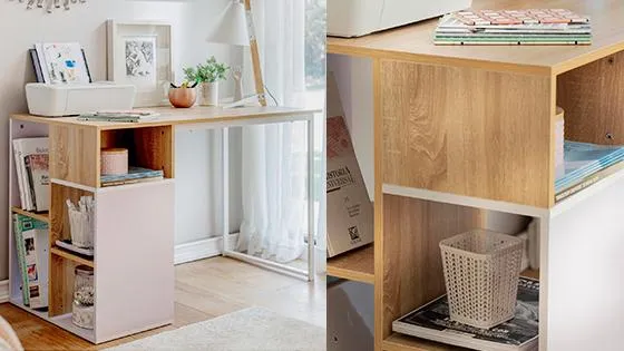 Escritorio Natural/Blanco Melamina Weeks con Estante